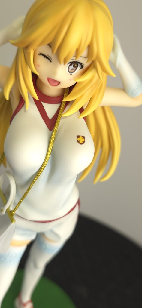 特徴 | 素晴らしいパイスラでした。キャストオフや下着がチラっと見えるようなギミックは無し。 パイスラ好きなら買ってもいいかも。定価よりだいぶ安く売られているはず。 塗装が若干のっぺりとしていて毛先もシャープとはいいがたく、動きのあるポーズでもないので、 飾り映えはしないかもしれないが、個人的には膝や脇の造形にぐっとくるものがあった。 |
