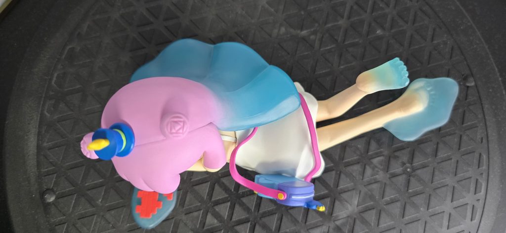 特徴胴体と胸部より上の部分でパーツが分かれているが、穴が小さくて全然はまらず無理やり押し込んで組み立てた。あと、組み立てる前にバックのヒモを腰回りに置いておくことが必須。腰回りの空間を尻と髪の毛でふさぐことでバックが取れないようになる。