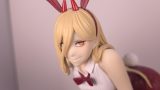 表情は不敵な笑みで、パワーの元気で狂気を孕んだキャラ性をしっかり再現。バニースーツは光沢ラメ仕上げで、ライトブルーの鮮やかさが美しく、脚線美を強調。