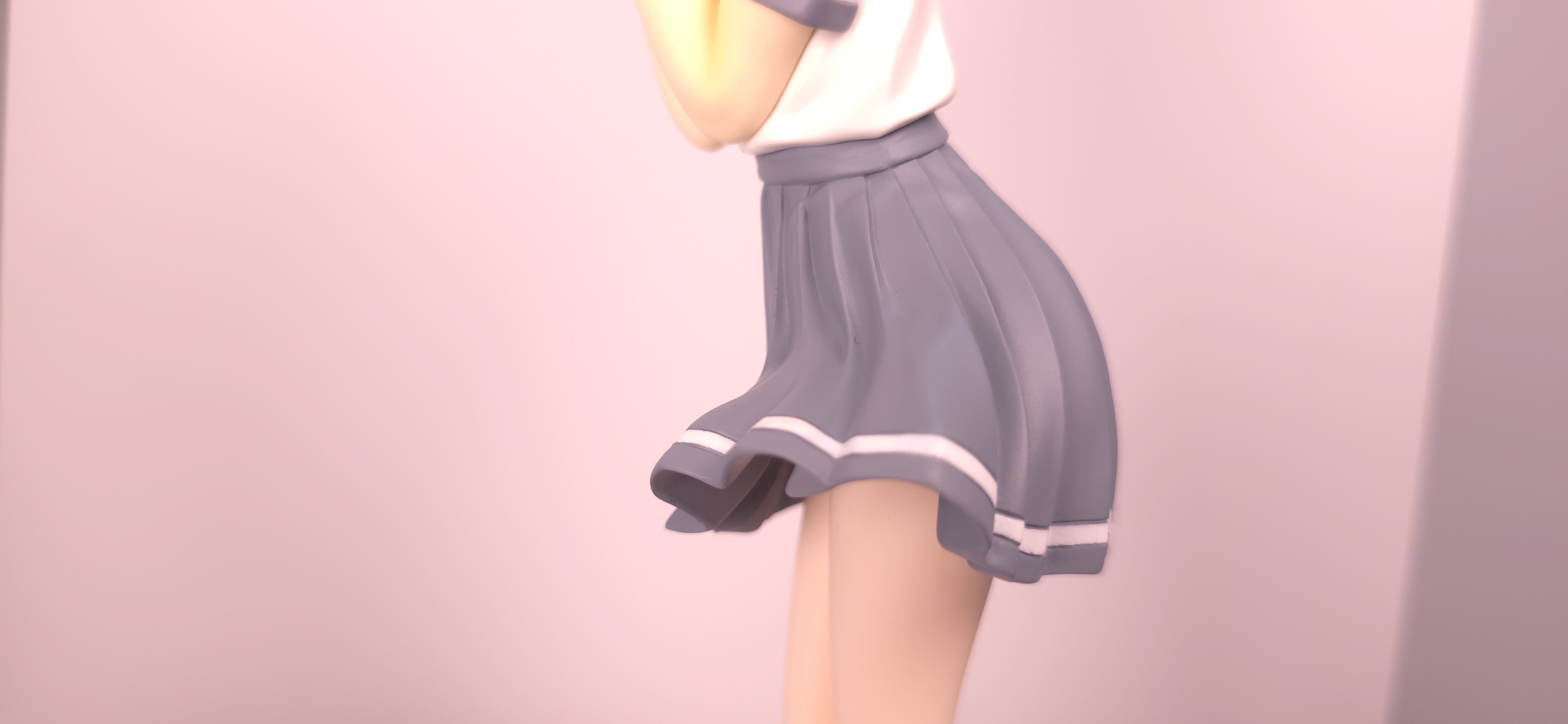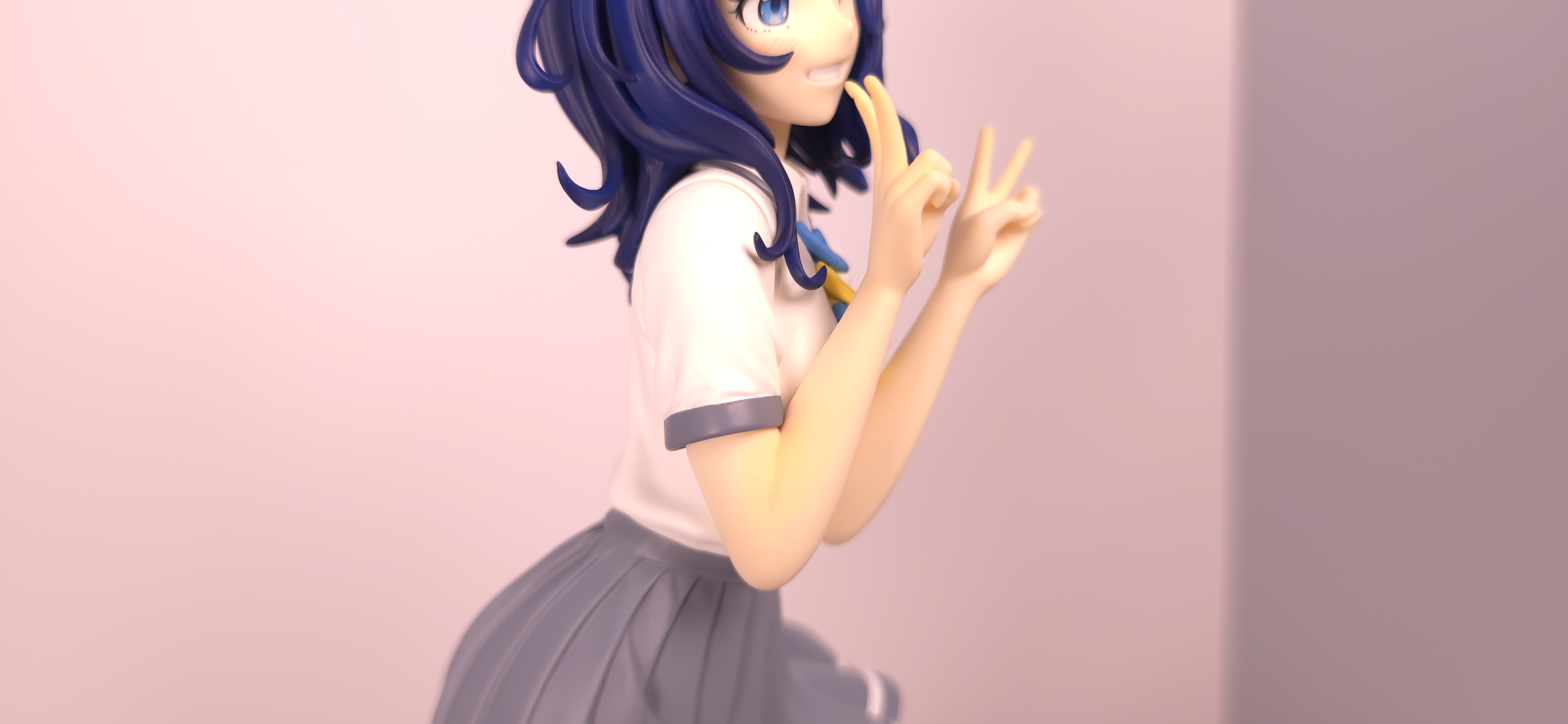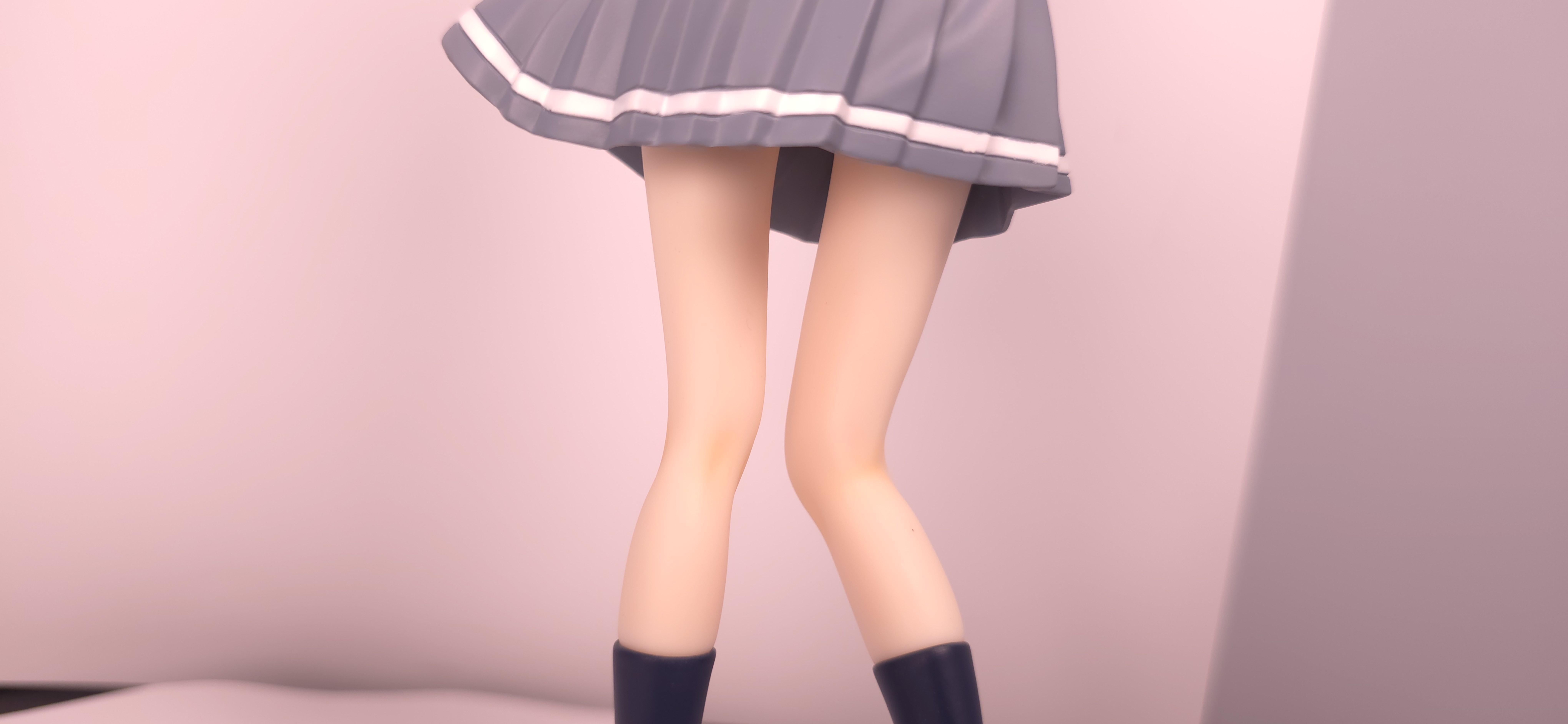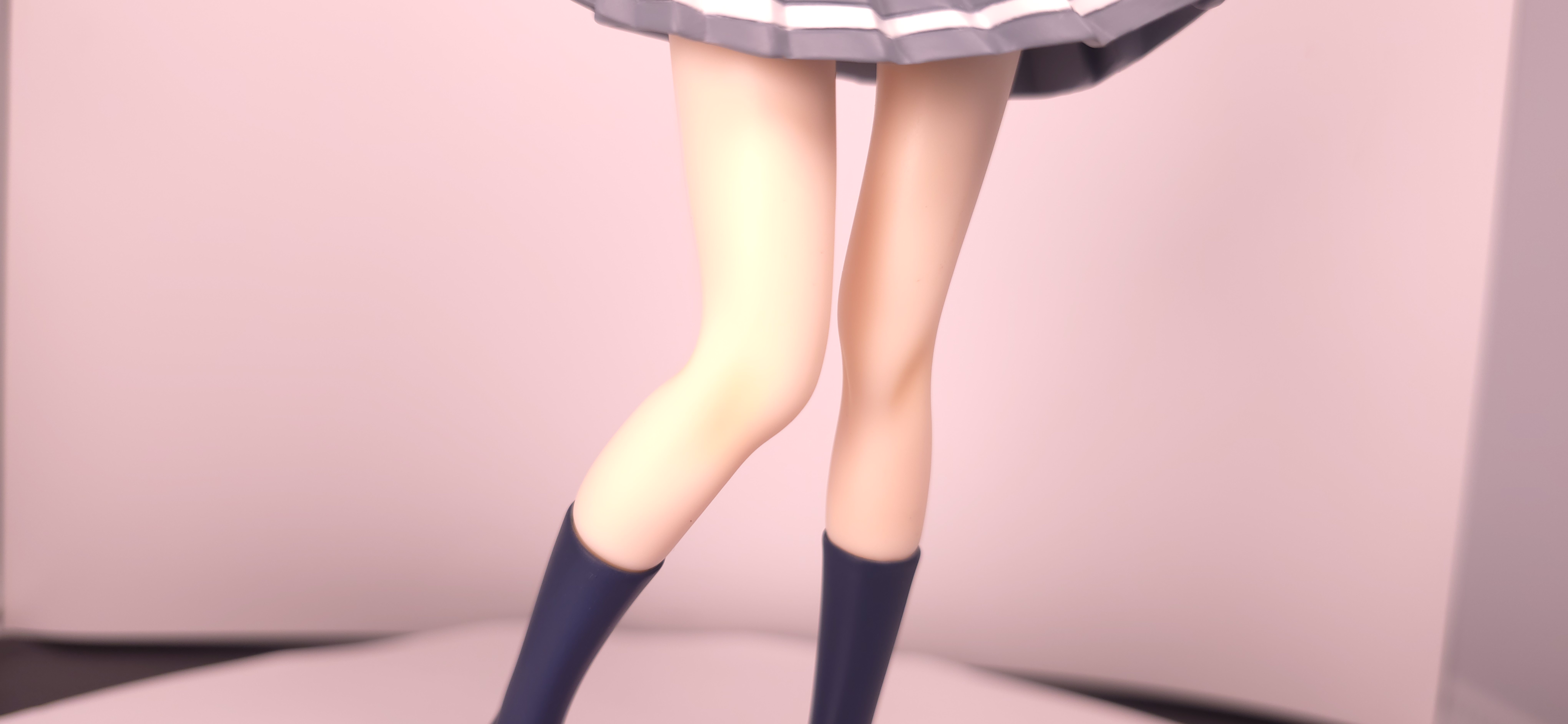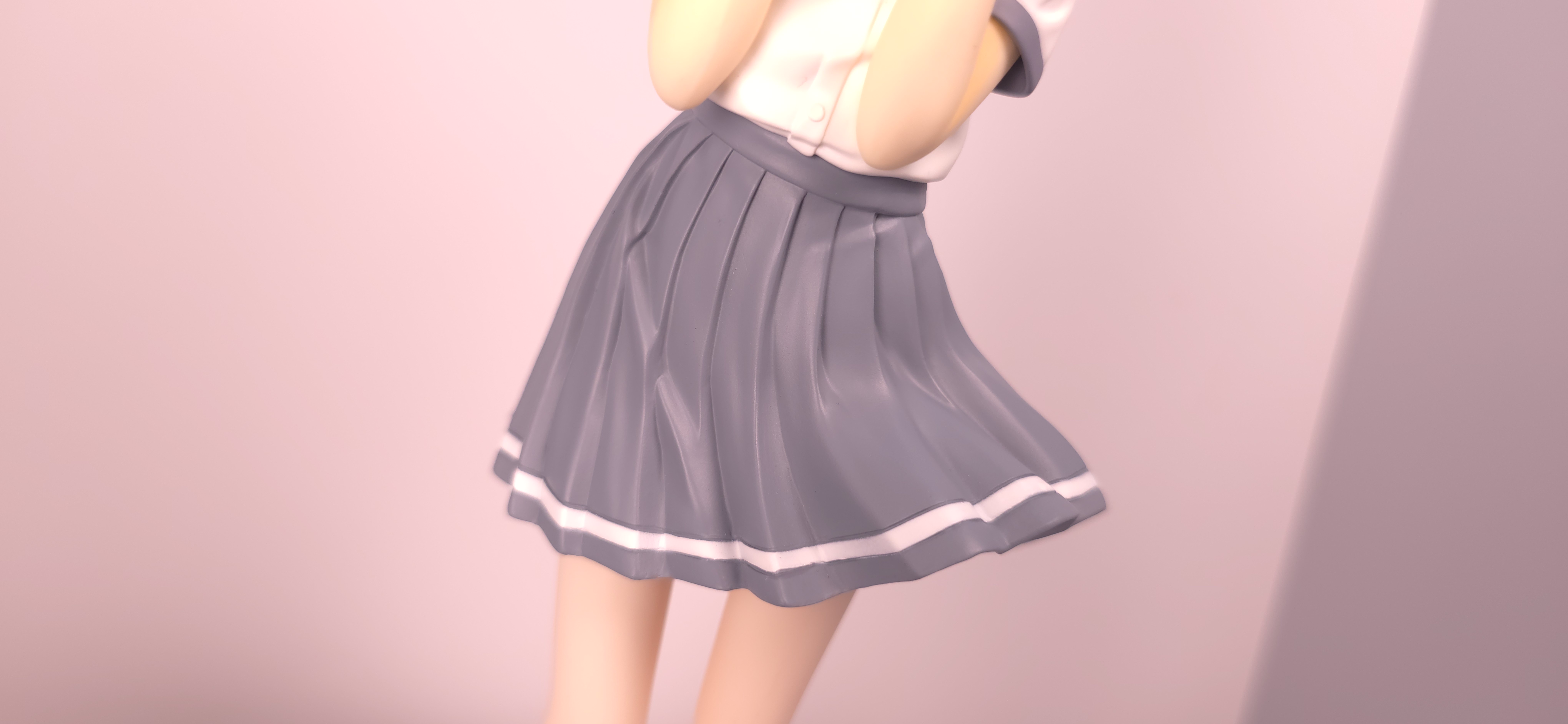 | 特徴 | グッドスマイルカンパニーより、『負けヒロインが多すぎる!』の「八奈見 杏菜」がビッグなサイズで登場! まず『負けヒロインが多すぎる!』は未読・未視聴。 純粋に「八奈見 杏菜」というキャラクターのビジュアルに惹かれて、フィギュアやグッズを買い集めている。 なので、特に原作やアニメの観点からどうと言うことはない。 基本的な情報としては、台座込みの全高が約24cm。 本体・台座ともにプラスチック素材。 「POP UP PARADE」シリーズなので当然のノンスケールフィギュア。 ただ、本シリーズ独自スケールの「Lサイズ」なるもので、通常よりも満足感の高い大きさになっている(その分価格も高くなるが)。 さて。特にキャラについて語ることが無いので、フィギュア本体の感想だが、ぶっちゃけ大味な印象。 髪の流れや、制服・リボン・靴等、それなりに繊細に作られており、部分部分を切り取って見ると悪くない。 特に靴の爪先を少し曲げたときに生まれる線の質感は素晴らしい。このフィギュアで最もこだわりを感じた。 ダブルピースのポーズによるシャツのシワや、風になびくスカートの表現も魅力的。 ここからは、あまりいい印象を抱けなかったポイントになる。 まず、顔について率直に言うと「なんか違くない?誰?」。 正面から見るとそこそこだが、少し角度を変えると目線なり、鼻の高さなりに違和感を覚えた。 パンツからは、やる気を感じられなかった。 下腹部までパンツと同じ白で塗られており、パンツ自体も正面がツルツルで、クロッチの縫い目の場所もいまいち。 この生パンは、何ら私の心を掴まない。 良く磨かれたガラスの壁のように、掴んでもスッと滑り落ちていく。指先に僅かな摩擦すら感じさせない。 総括すると、「まぁ…好きなら買えば」といった具合。 |