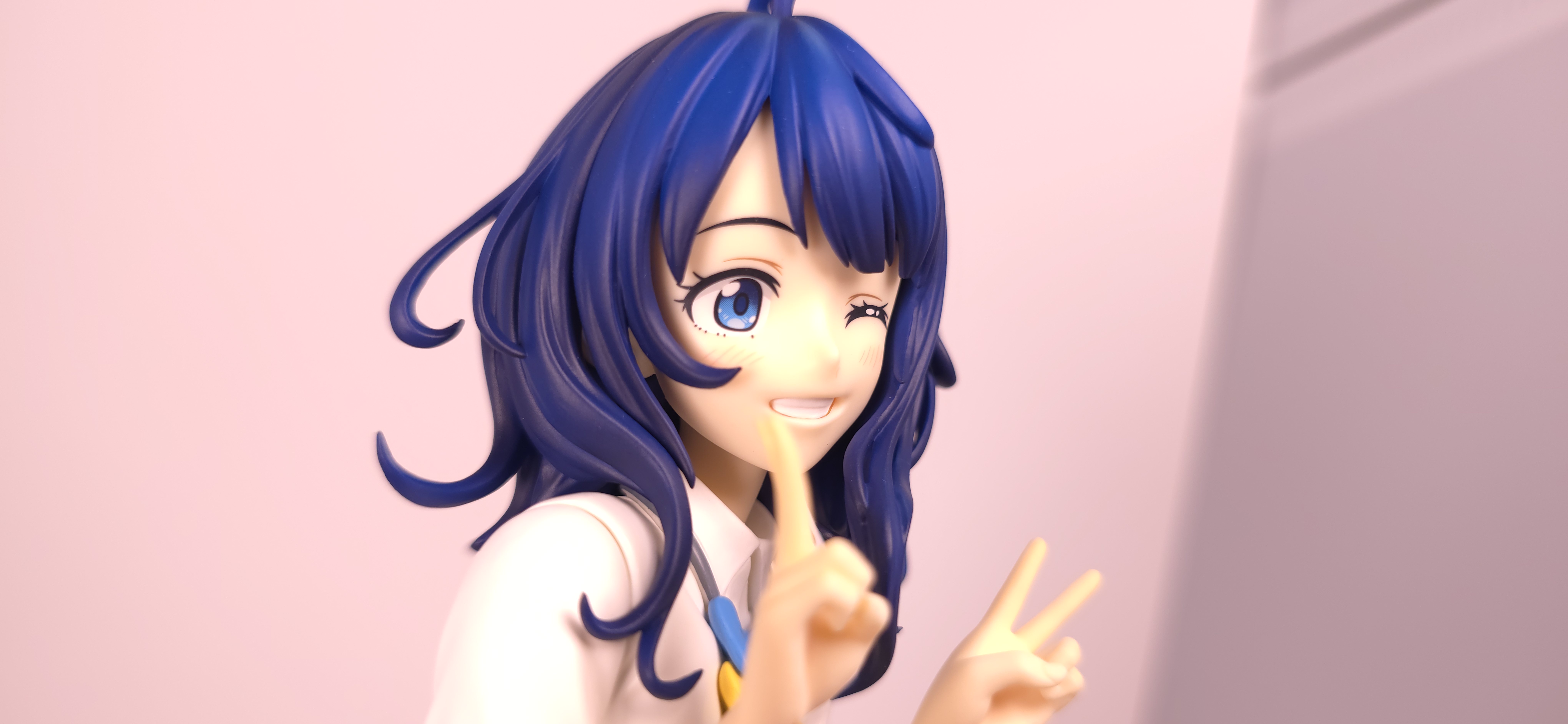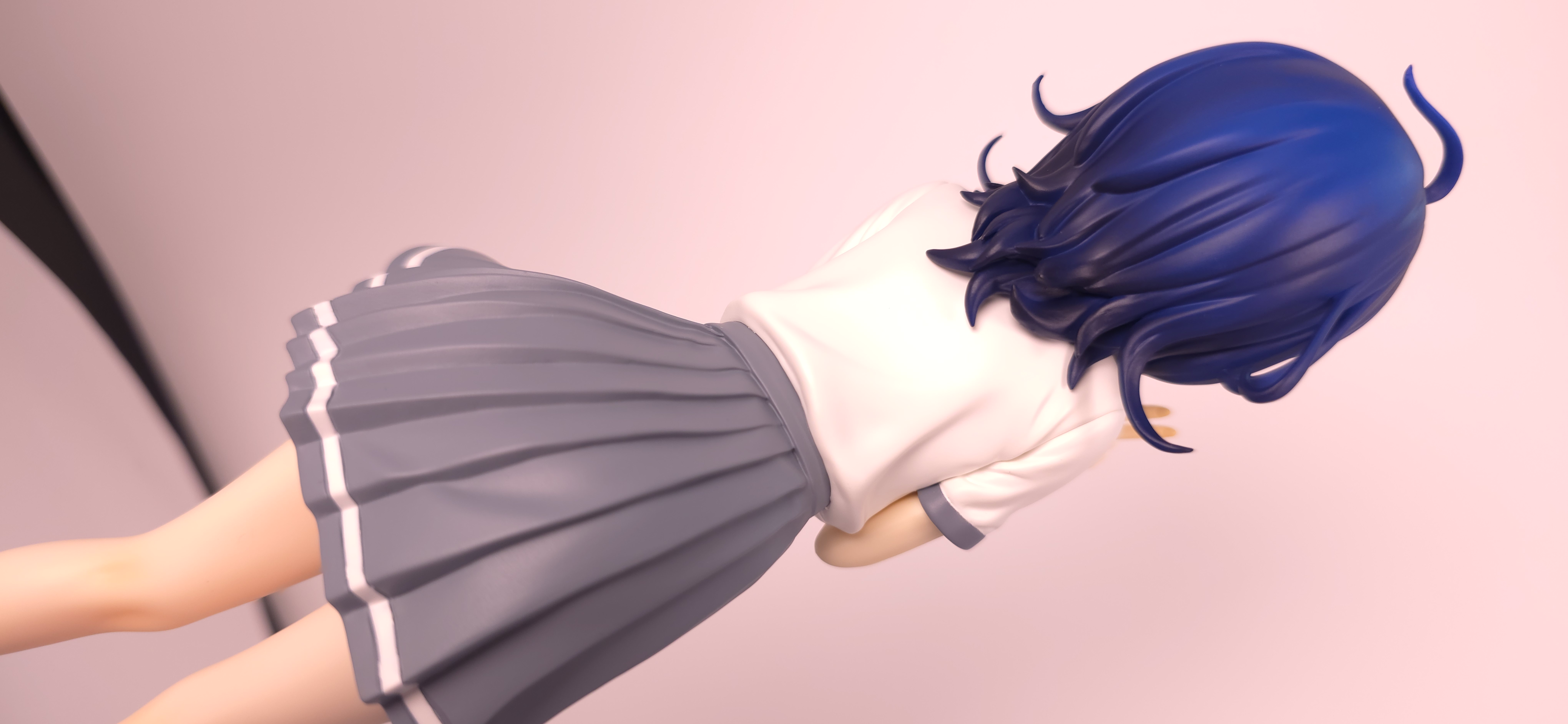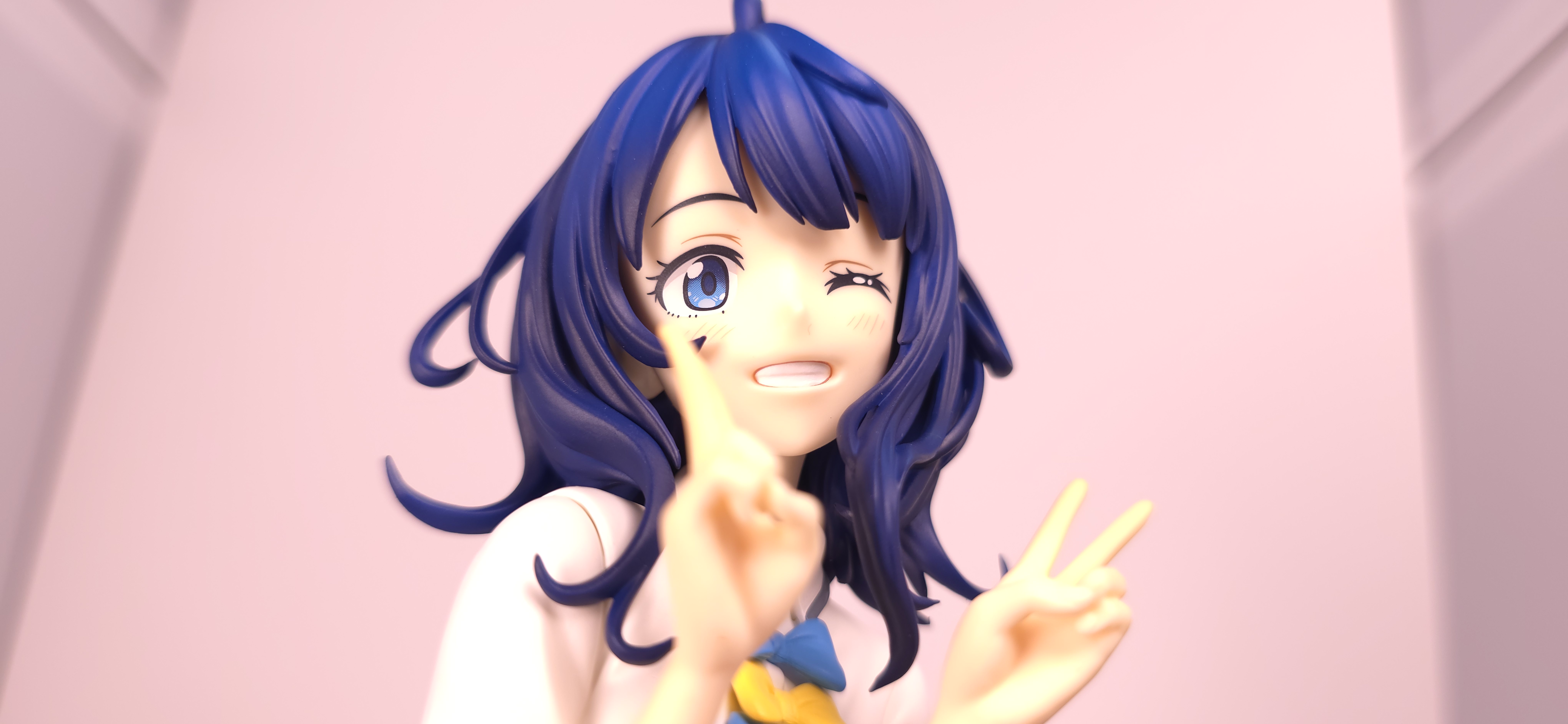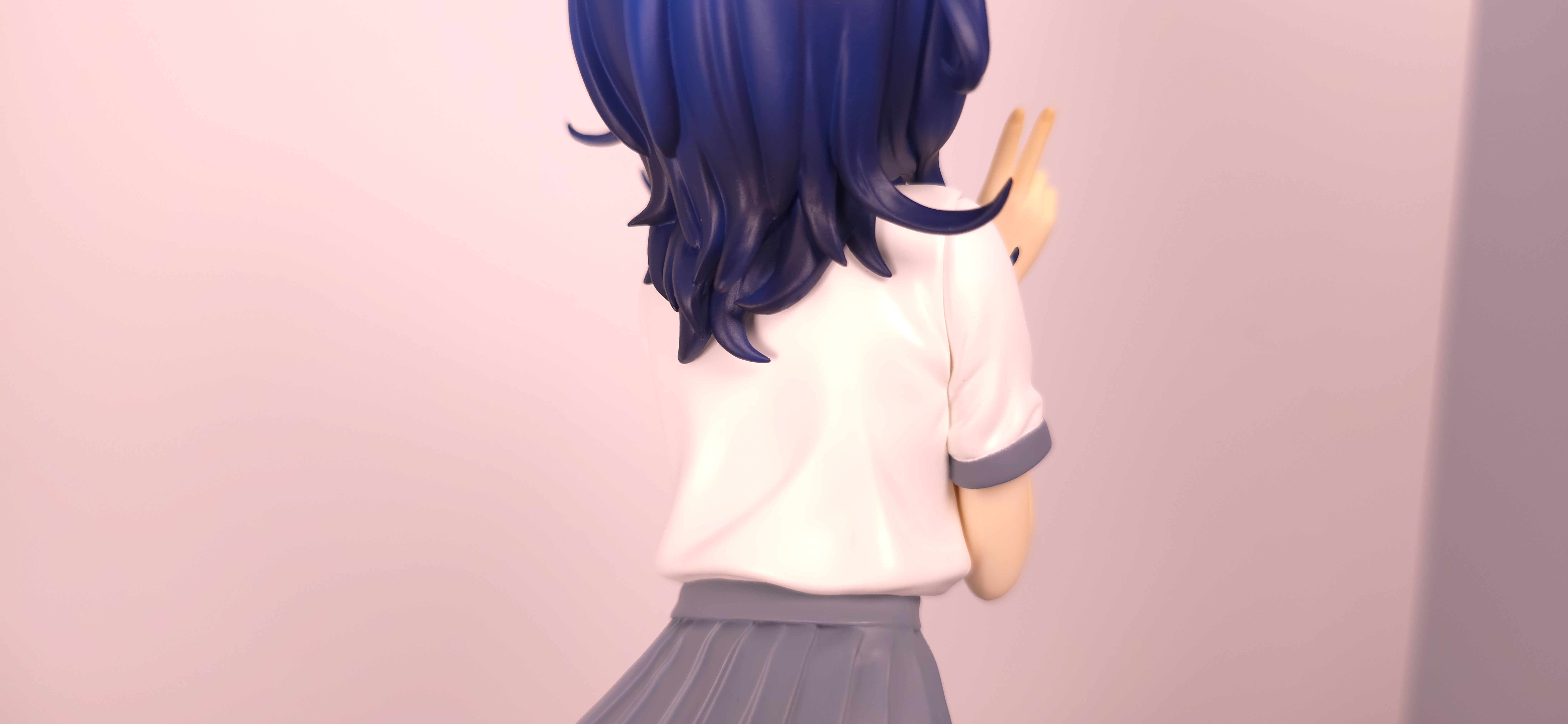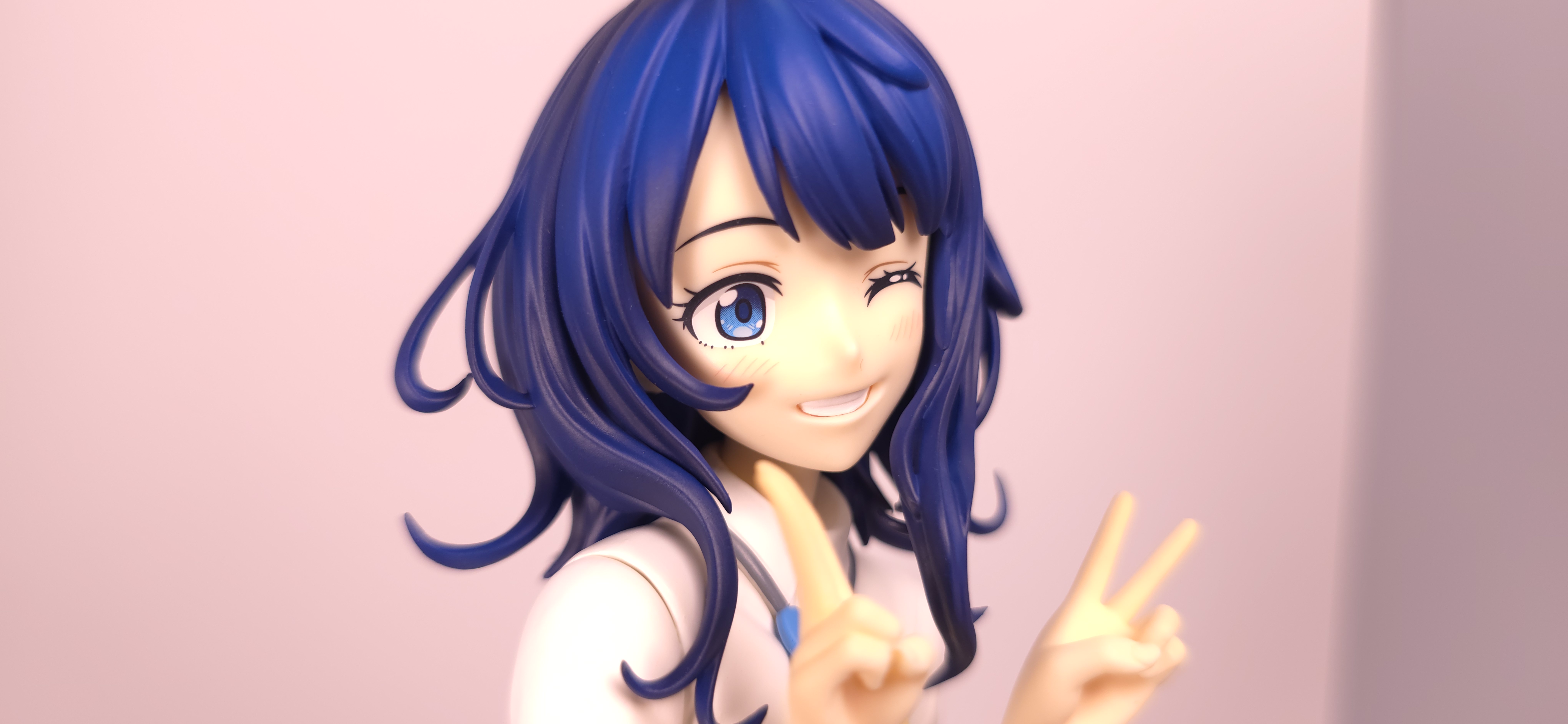 | 特徴 | グッドスマイルカンパニーより、『負けヒロインが多すぎる!』の「八奈見 杏菜」がビッグなサイズで登場! まず『負けヒロインが多すぎる!』は未読・未視聴。 純粋に「八奈見 杏菜」というキャラクターのビジュアルに惹かれて、フィギュアやグッズを買い集めている。 なので、特に原作やアニメの観点からどうと言うことはない。 基本的な情報としては、台座込みの全高が約24cm。 本体・台座ともにプラスチック素材。 「POP UP PARADE」シリーズなので当然のノンスケールフィギュア。 ただ、本シリーズ独自スケールの「Lサイズ」なるもので、通常よりも満足感の高い大きさになっている(その分価格も高くなるが)。 さて。特にキャラについて語ることが無いので、フィギュア本体の感想だが、ぶっちゃけ大味な印象。 髪の流れや、制服・リボン・靴等、それなりに繊細に作られており、部分部分を切り取って見ると悪くない。 特に靴の爪先を少し曲げたときに生まれる線の質感は素晴らしい。このフィギュアで最もこだわりを感じた。 ダブルピースのポーズによるシャツのシワや、風になびくスカートの表現も魅力的。 ここからは、あまりいい印象を抱けなかったポイントになる。 まず、顔について率直に言うと「なんか違くない?誰?」。 正面から見るとそこそこだが、少し角度を変えると目線なり、鼻の高さなりに違和感を覚えた。 パンツからは、やる気を感じられなかった。 下腹部までパンツと同じ白で塗られており、パンツ自体も正面がツルツルで、クロッチの縫い目の場所もいまいち。 この生パンは、何ら私の心を掴まない。 良く磨かれたガラスの壁のように、掴んでもスッと滑り落ちていく。指先に僅かな摩擦すら感じさせない。 総括すると、「まぁ…好きなら買えば」といった具合。 |