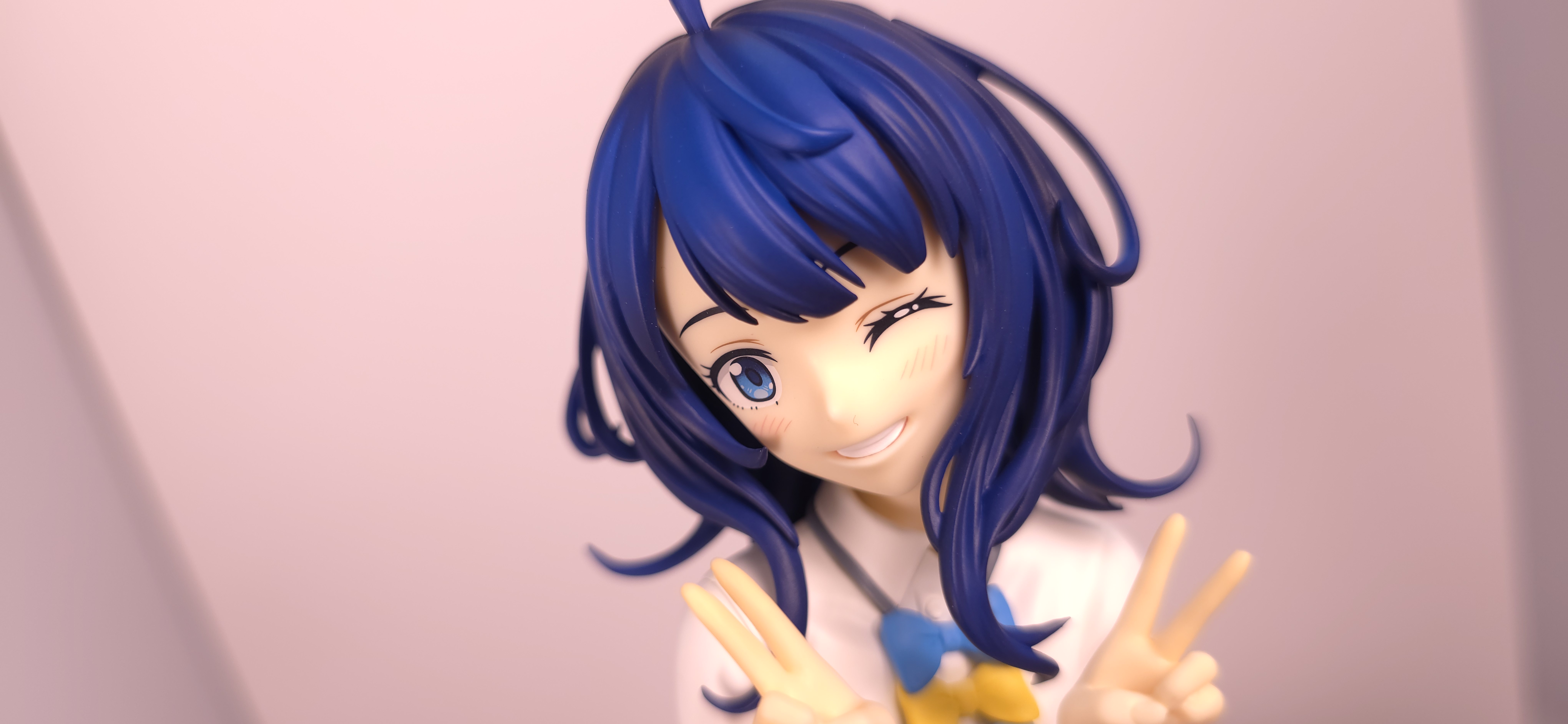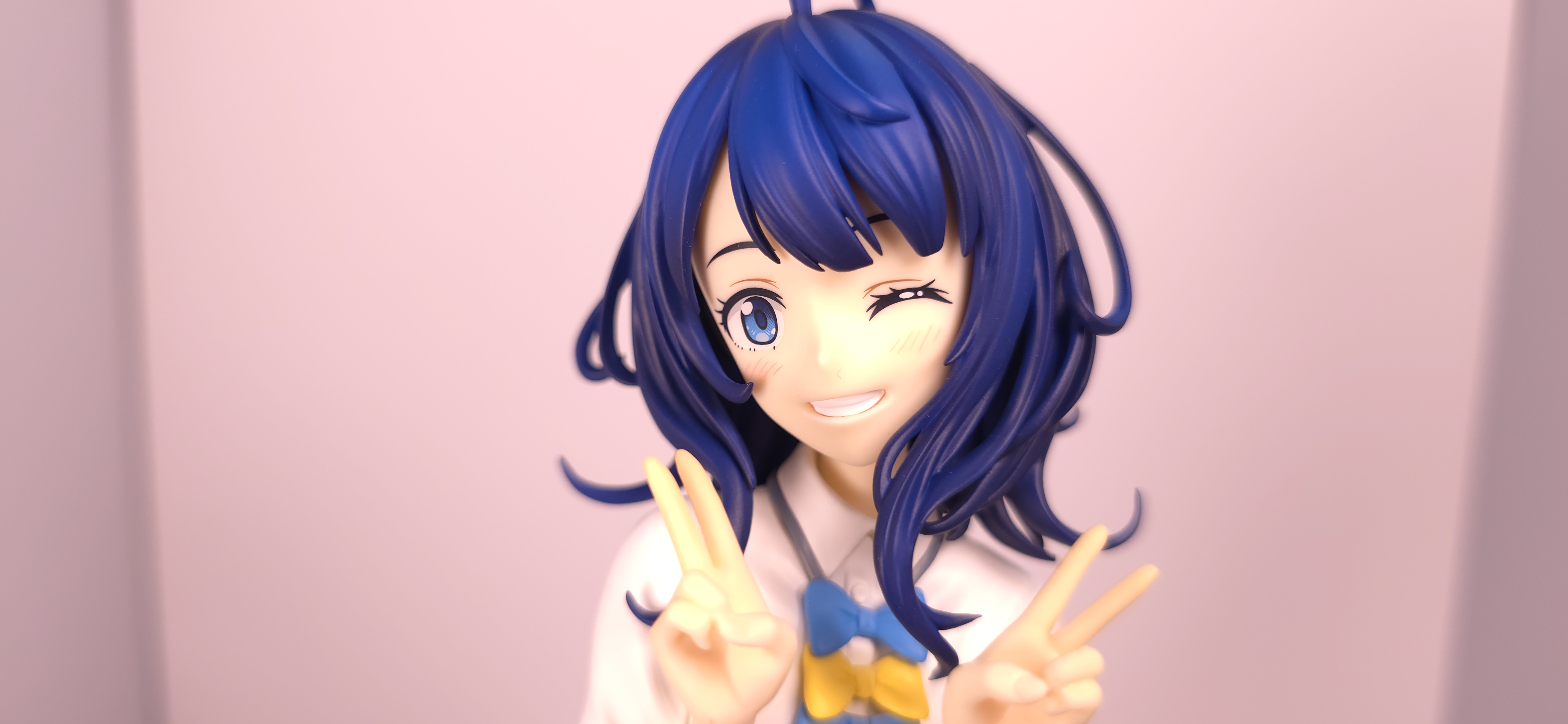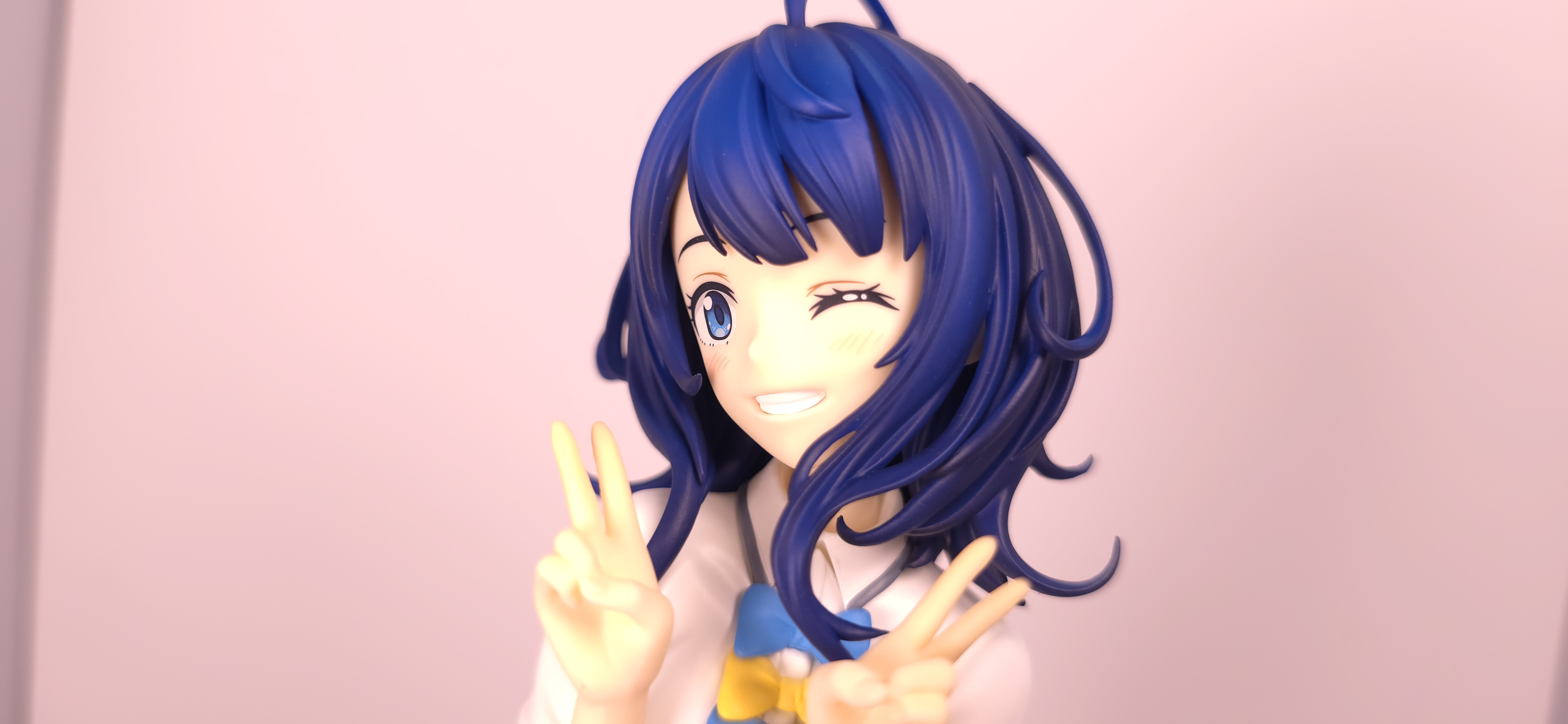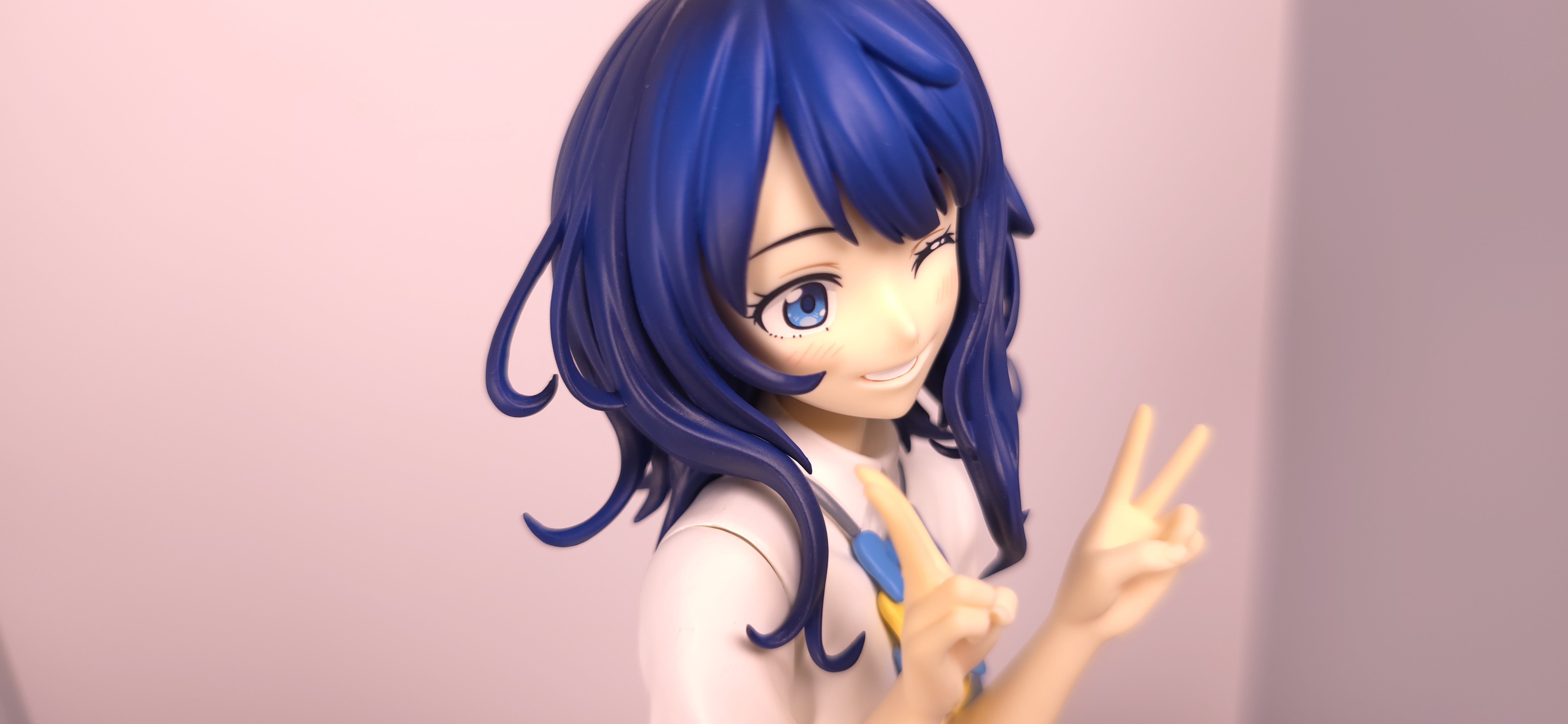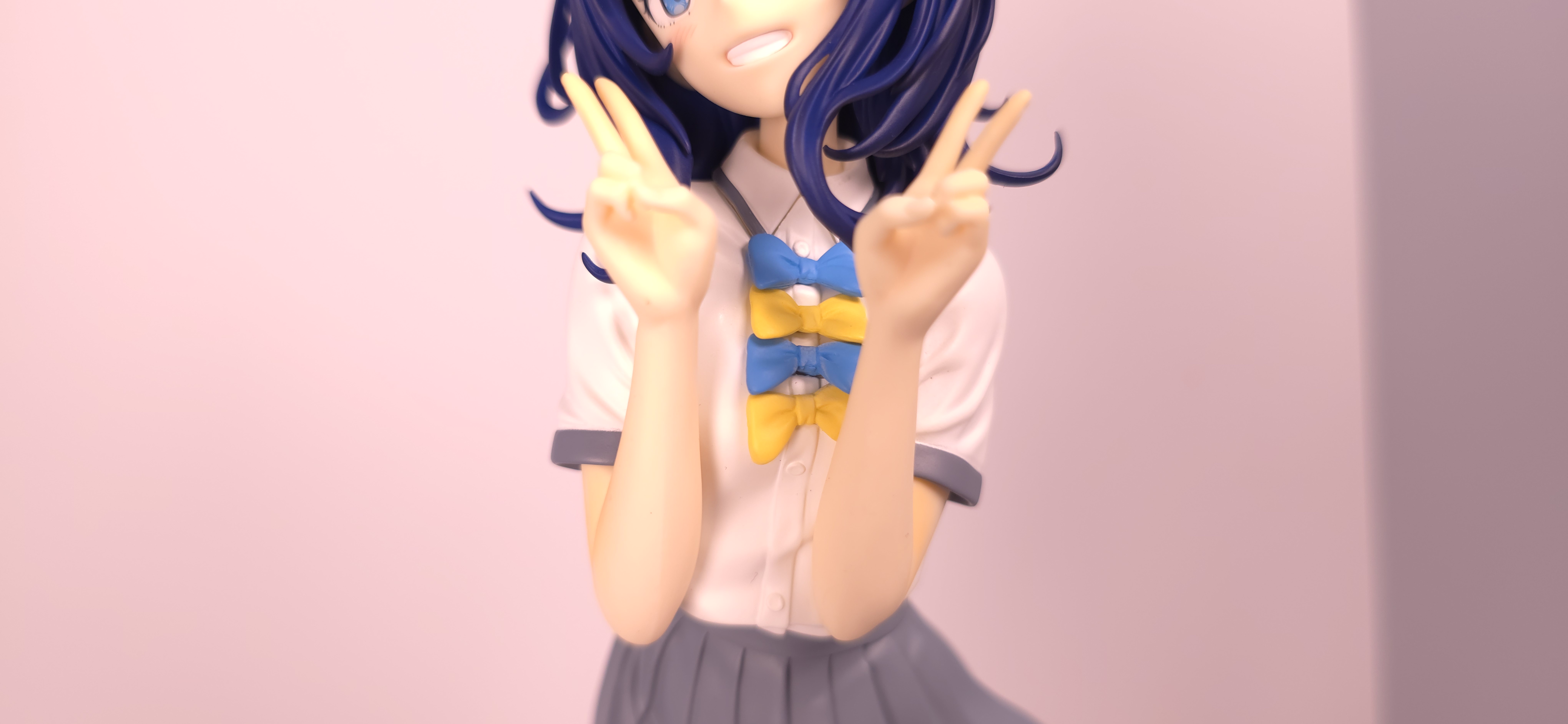 | 特徴 | グッドスマイルカンパニーより、『負けヒロインが多すぎる!』の「八奈見 杏菜」がビッグなサイズで登場! まず『負けヒロインが多すぎる!』は未読・未視聴。 純粋に「八奈見 杏菜」というキャラクターのビジュアルに惹かれて、フィギュアやグッズを買い集めている。 なので、特に原作やアニメの観点からどうと言うことはない。 基本的な情報としては、台座込みの全高が約24cm。 本体・台座ともにプラスチック素材。 「POP UP PARADE」シリーズなので当然のノンスケールフィギュア。 ただ、本シリーズ独自スケールの「Lサイズ」なるもので、通常よりも満足感の高い大きさになっている(その分価格も高くなるが)。 さて。特にキャラについて語ることが無いので、フィギュア本体の感想だが、ぶっちゃけ大味な印象。 髪の流れや、制服・リボン・靴等、それなりに繊細に作られており、部分部分を切り取って見ると悪くない。 特に靴の爪先を少し曲げたときに生まれる線の質感は素晴らしい。このフィギュアで最もこだわりを感じた。 ダブルピースのポーズによるシャツのシワや、風になびくスカートの表現も魅力的。 ここからは、あまりいい印象を抱けなかったポイントになる。 まず、顔について率直に言うと「なんか違くない?誰?」。 正面から見るとそこそこだが、少し角度を変えると目線なり、鼻の高さなりに違和感を覚えた。 パンツからは、やる気を感じられなかった。 下腹部までパンツと同じ白で塗られており、パンツ自体も正面がツルツルで、クロッチの縫い目の場所もいまいち。 この生パンは、何ら私の心を掴まない。 良く磨かれたガラスの壁のように、掴んでもスッと滑り落ちていく。指先に僅かな摩擦すら感じさせない。 総括すると、「まぁ…好きなら買えば」といった具合。 |
