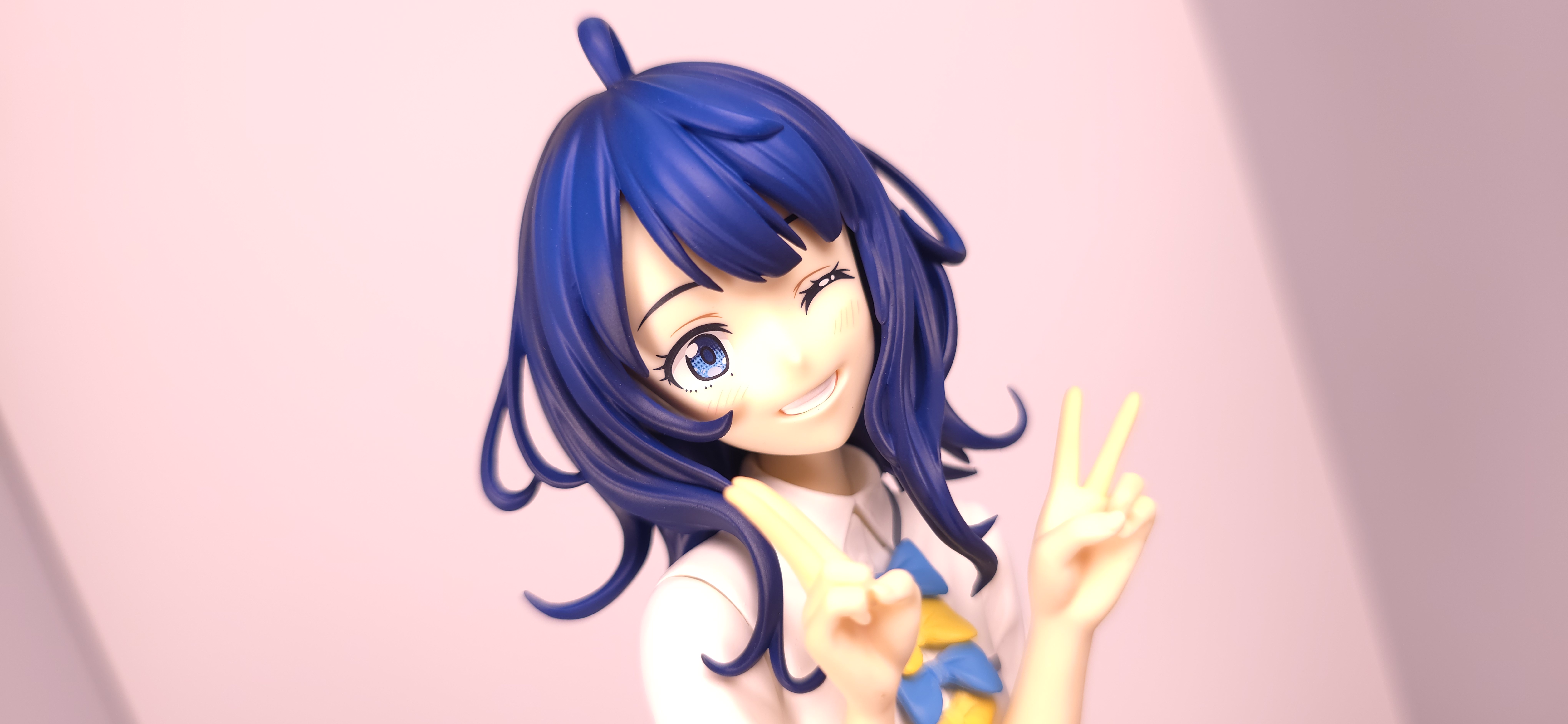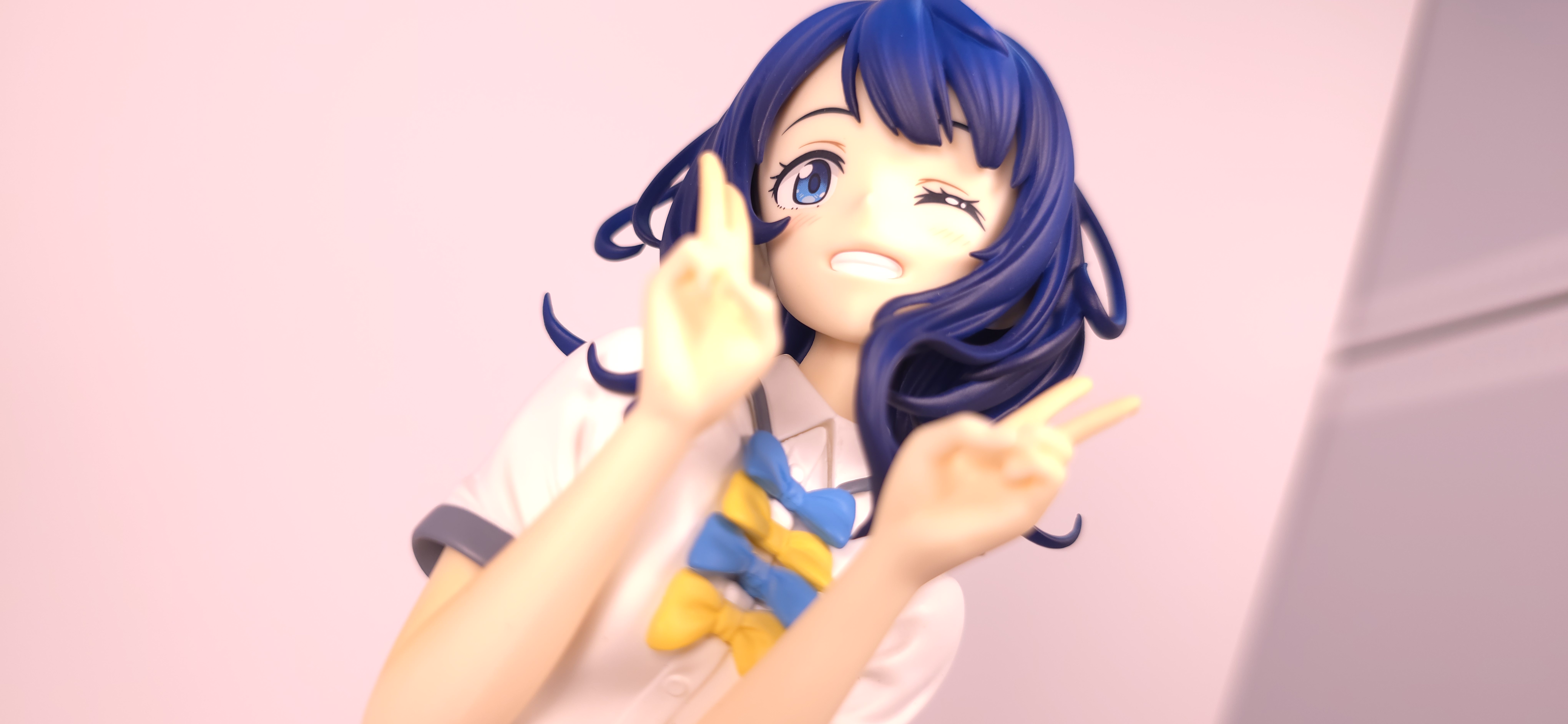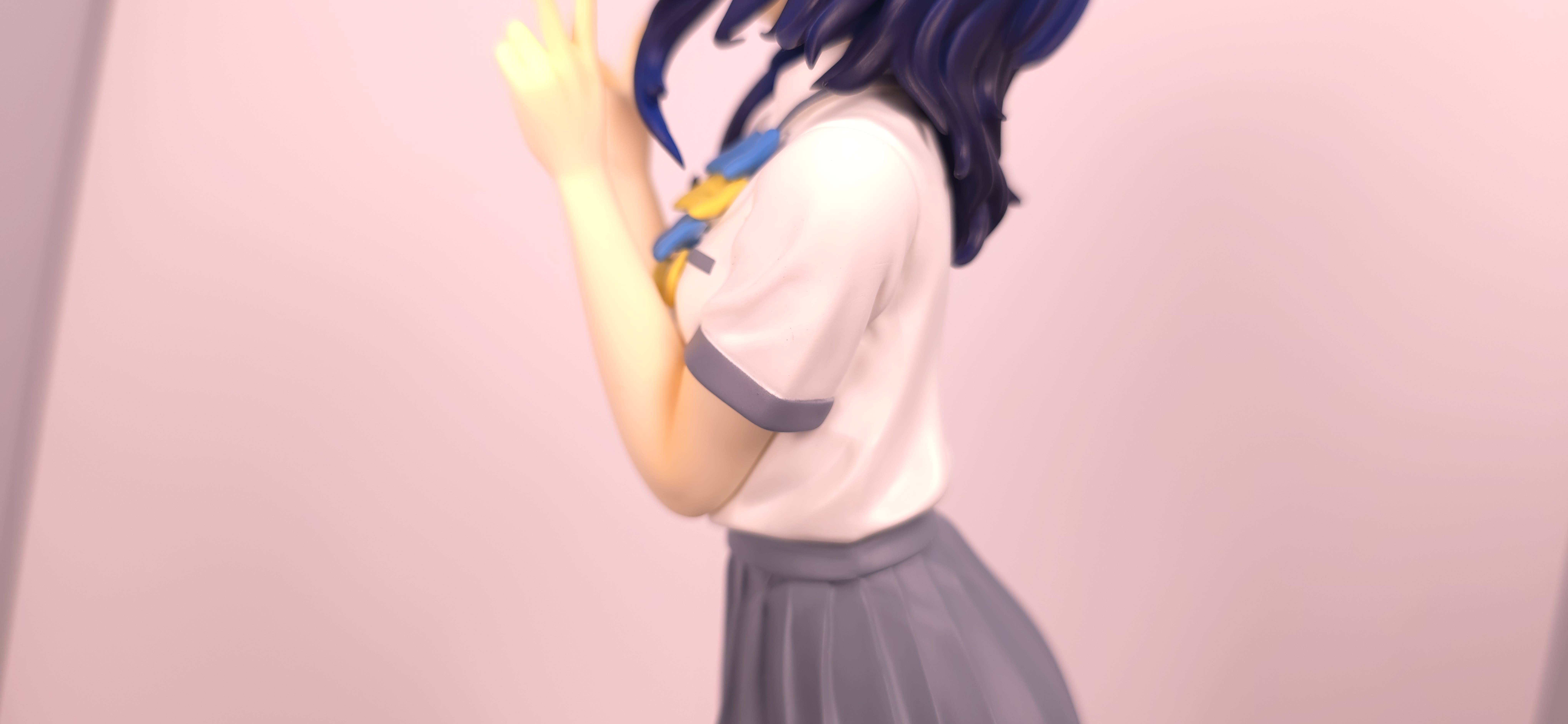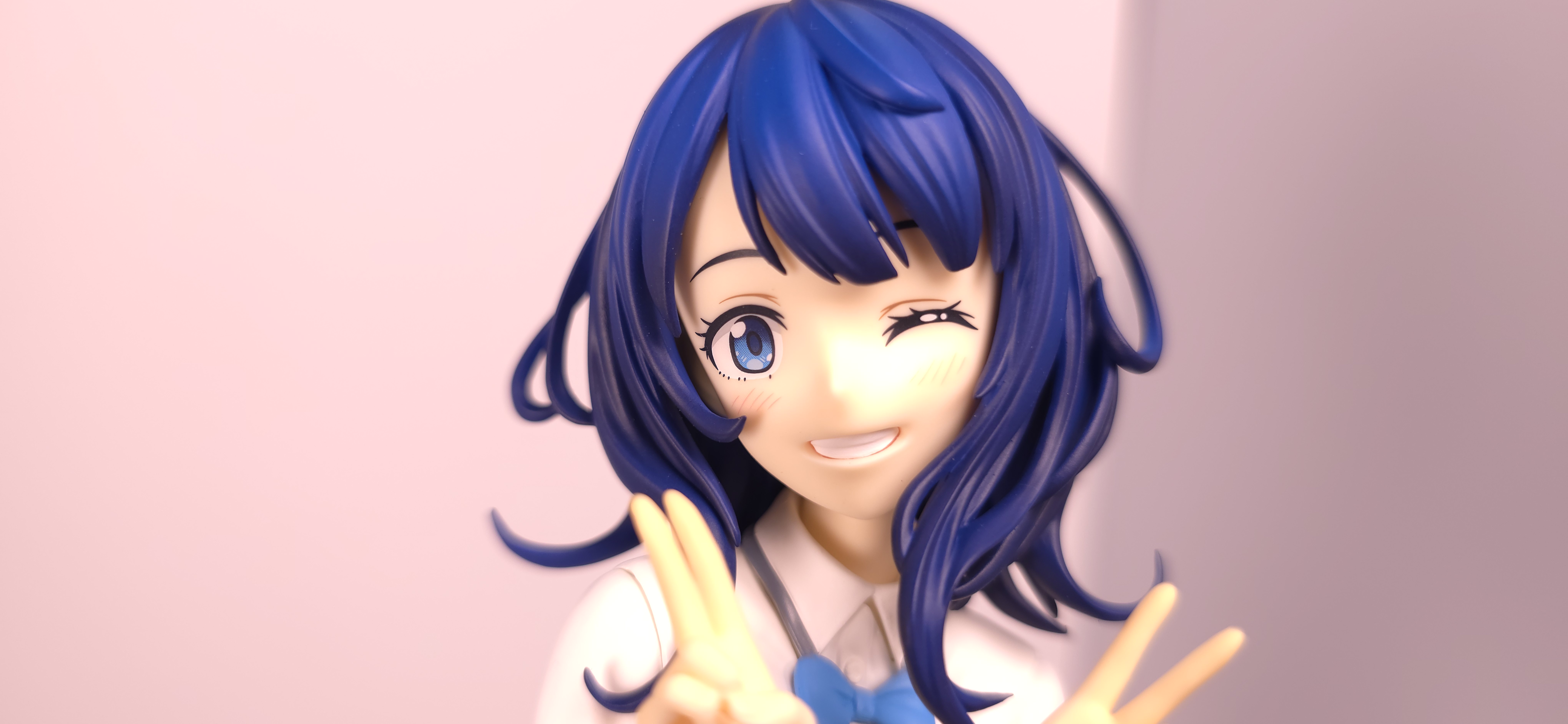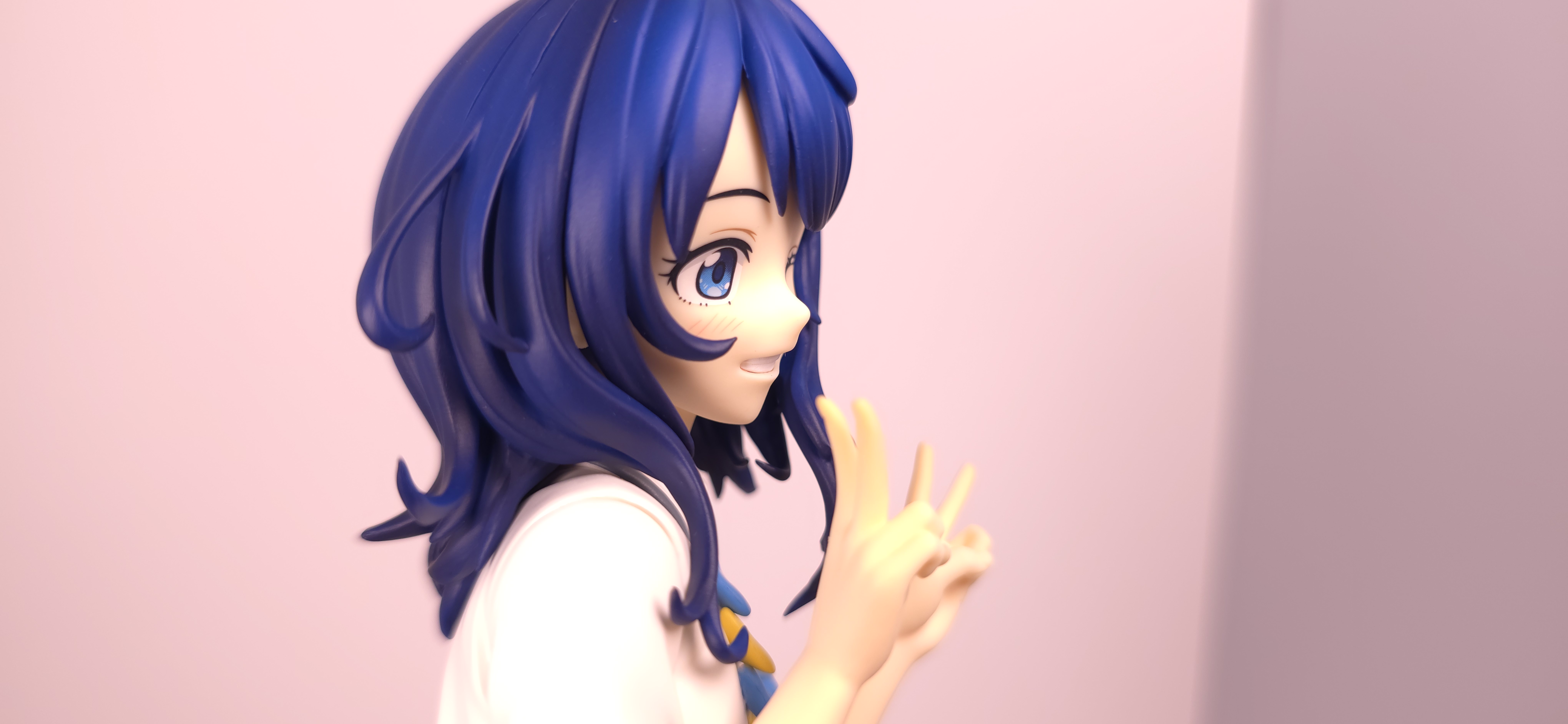 | 特徴 | グッドスマイルカンパニーより、『負けヒロインが多すぎる!』の「八奈見 杏菜」がビッグなサイズで登場! まず『負けヒロインが多すぎる!』は未読・未視聴。 純粋に「八奈見 杏菜」というキャラクターのビジュアルに惹かれて、フィギュアやグッズを買い集めている。 なので、特に原作やアニメの観点からどうと言うことはない。 基本的な情報としては、台座込みの全高が約24cm。 本体・台座ともにプラスチック素材。 「POP UP PARADE」シリーズなので当然のノンスケールフィギュア。 ただ、本シリーズ独自スケールの「Lサイズ」なるもので、通常よりも満足感の高い大きさになっている(その分価格も高くなるが)。 さて。特にキャラについて語ることが無いので、フィギュア本体の感想だが、ぶっちゃけ大味な印象。 髪の流れや、制服・リボン・靴等、それなりに繊細に作られており、部分部分を切り取って見ると悪くない。 特に靴の爪先を少し曲げたときに生まれる線の質感は素晴らしい。このフィギュアで最もこだわりを感じた。 ダブルピースのポーズによるシャツのシワや、風になびくスカートの表現も魅力的。 ここからは、あまりいい印象を抱けなかったポイントになる。 まず、顔について率直に言うと「なんか違くない?誰?」。 正面から見るとそこそこだが、少し角度を変えると目線なり、鼻の高さなりに違和感を覚えた。 パンツからは、やる気を感じられなかった。 下腹部までパンツと同じ白で塗られており、パンツ自体も正面がツルツルで、クロッチの縫い目の場所もいまいち。 この生パンは、何ら私の心を掴まない。 良く磨かれたガラスの壁のように、掴んでもスッと滑り落ちていく。指先に僅かな摩擦すら感じさせない。 総括すると、「まぁ…好きなら買えば」といった具合。 |