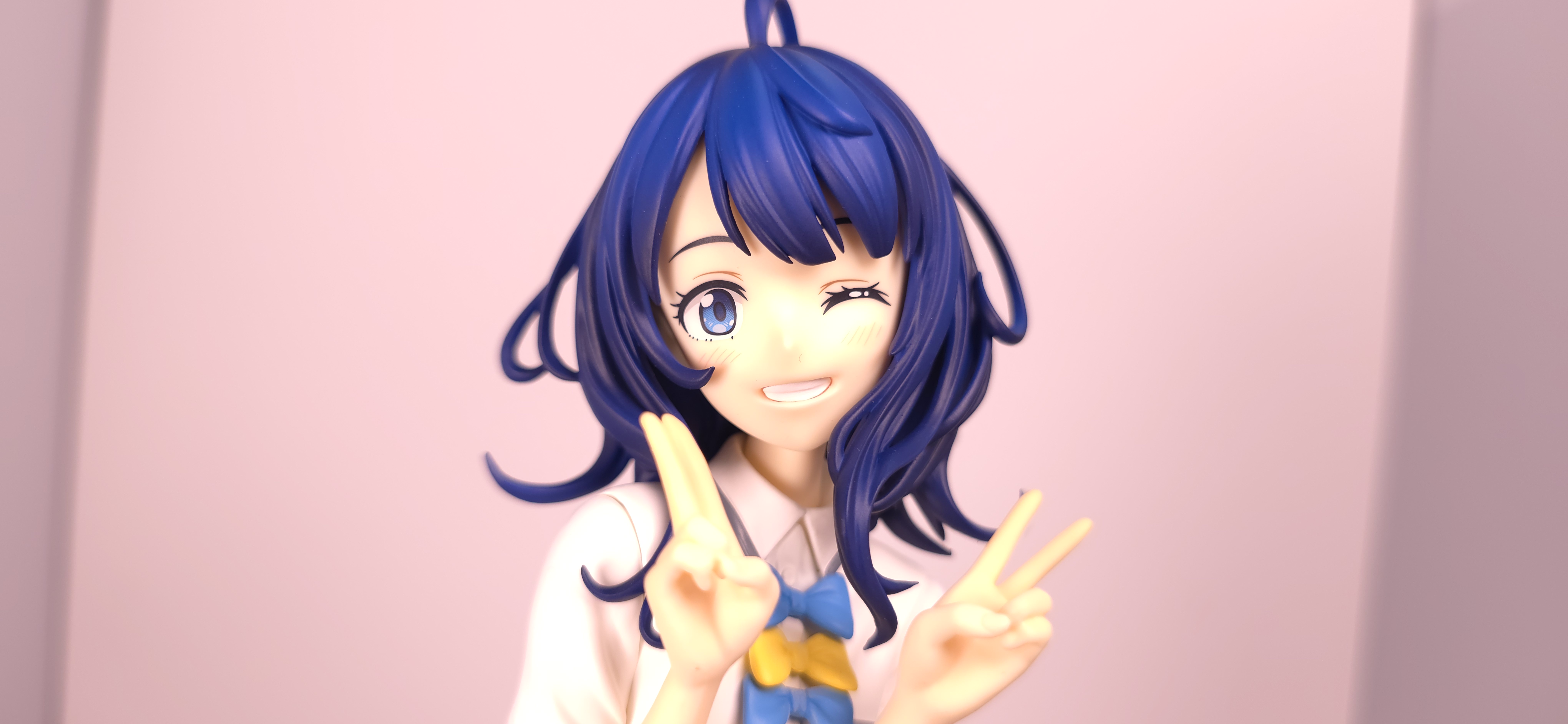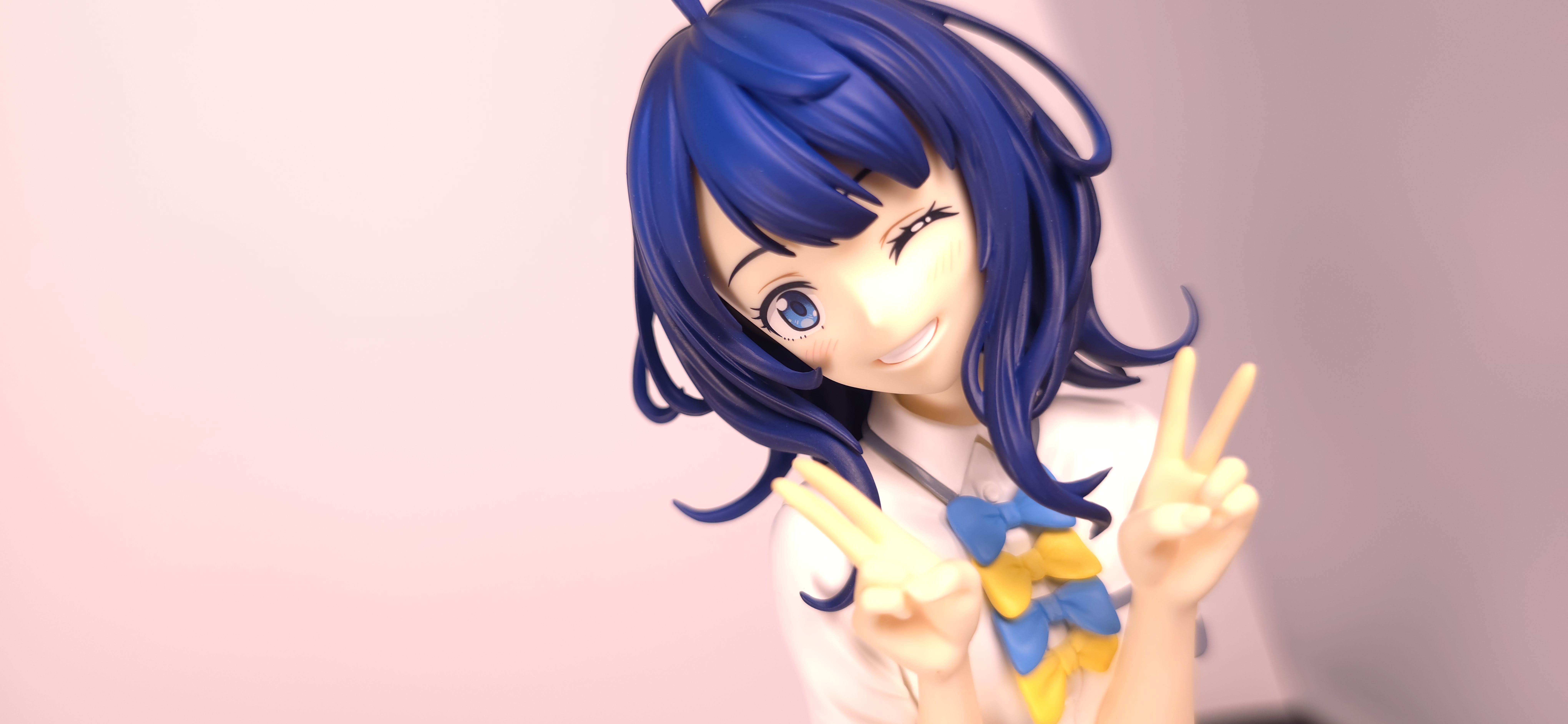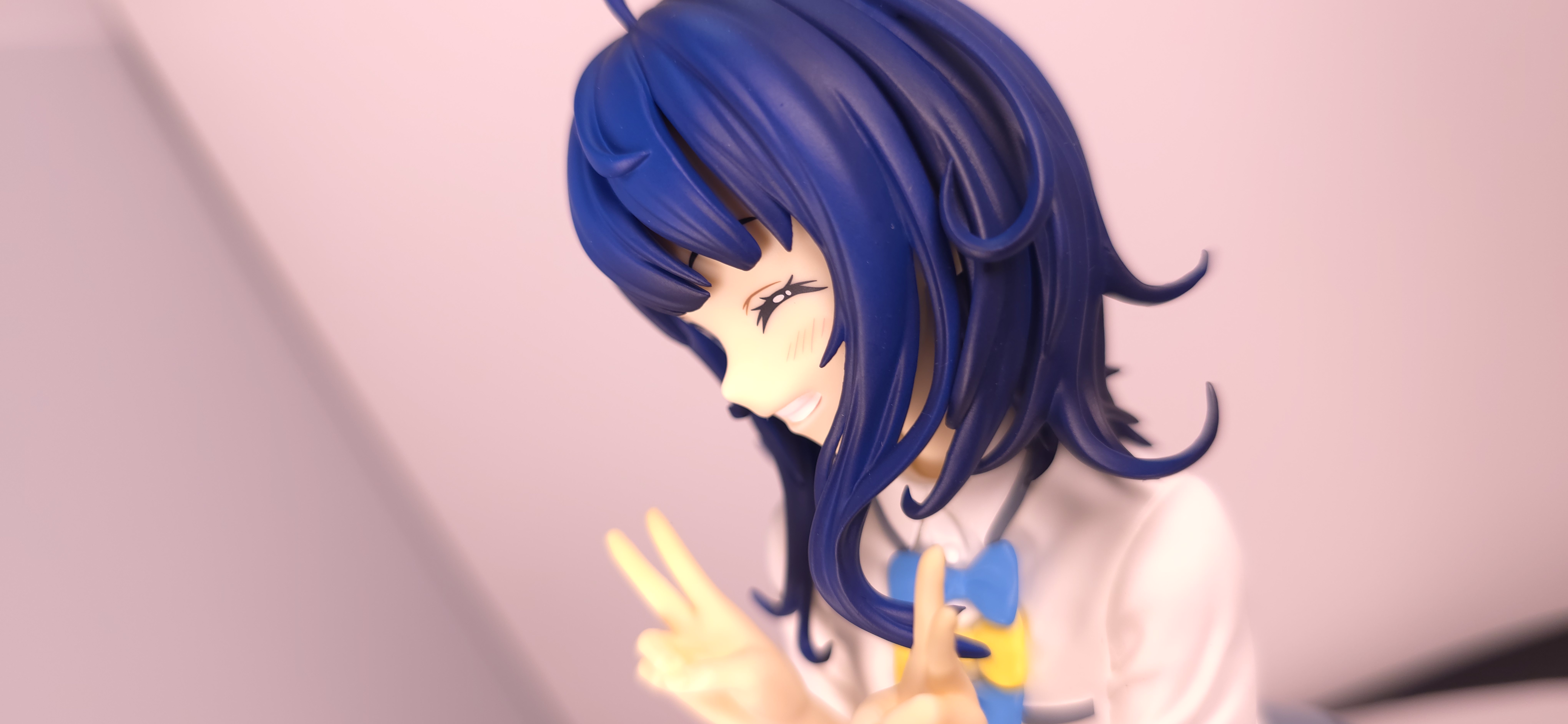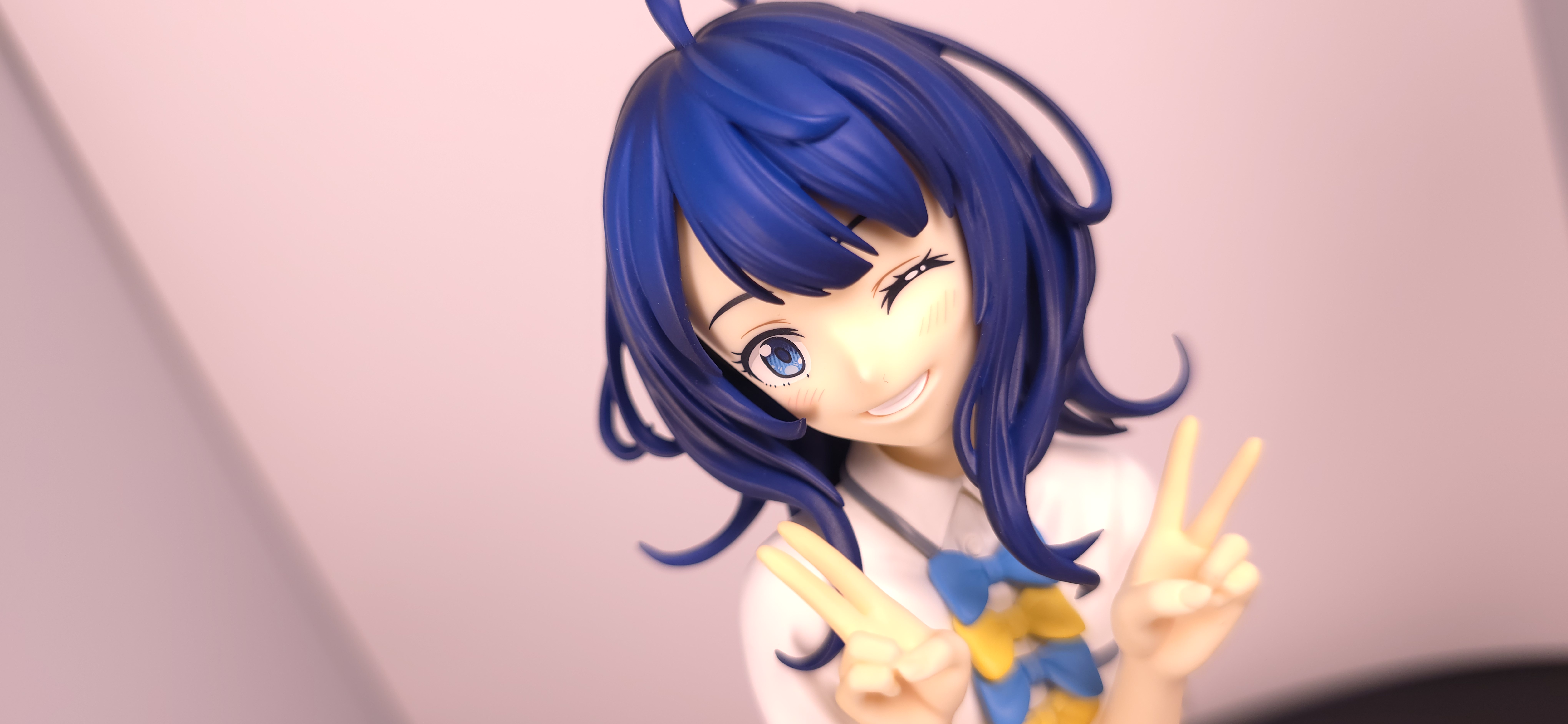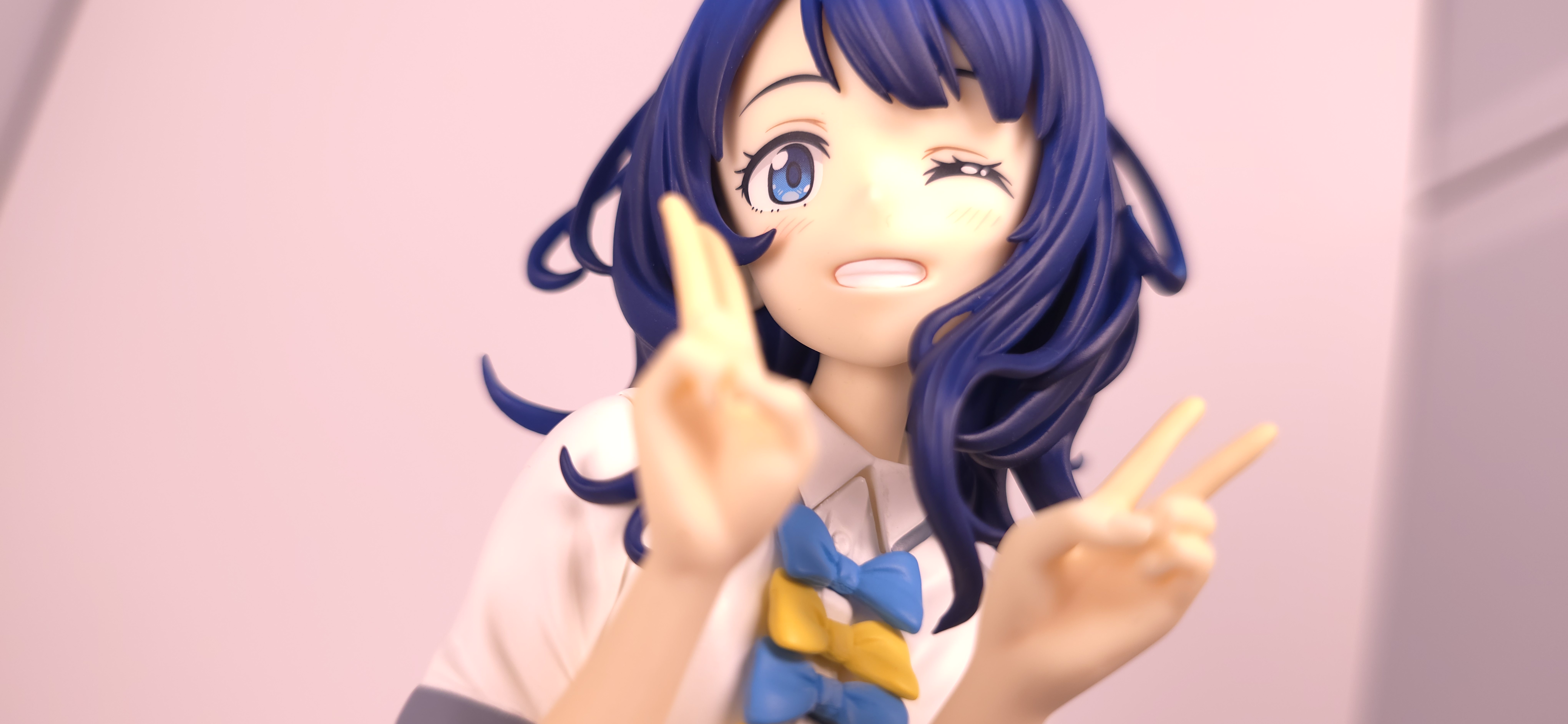 | 特徴 | グッドスマイルカンパニーより、『負けヒロインが多すぎる!』の「八奈見 杏菜」がビッグなサイズで登場! まず『負けヒロインが多すぎる!』は未読・未視聴。 純粋に「八奈見 杏菜」というキャラクターのビジュアルに惹かれて、フィギュアやグッズを買い集めている。 なので、特に原作やアニメの観点からどうと言うことはない。 基本的な情報としては、台座込みの全高が約24cm。 本体・台座ともにプラスチック素材。 「POP UP PARADE」シリーズなので当然のノンスケールフィギュア。 ただ、本シリーズ独自スケールの「Lサイズ」なるもので、通常よりも満足感の高い大きさになっている(その分価格も高くなるが)。 さて。特にキャラについて語ることが無いので、フィギュア本体の感想だが、ぶっちゃけ大味な印象。 髪の流れや、制服・リボン・靴等、それなりに繊細に作られており、部分部分を切り取って見ると悪くない。 特に靴の爪先を少し曲げたときに生まれる線の質感は素晴らしい。このフィギュアで最もこだわりを感じた。 ダブルピースのポーズによるシャツのシワや、風になびくスカートの表現も魅力的。 ここからは、あまりいい印象を抱けなかったポイントになる。 まず、顔について率直に言うと「なんか違くない?誰?」。 正面から見るとそこそこだが、少し角度を変えると目線なり、鼻の高さなりに違和感を覚えた。 パンツからは、やる気を感じられなかった。 下腹部までパンツと同じ白で塗られており、パンツ自体も正面がツルツルで、クロッチの縫い目の場所もいまいち。 この生パンは、何ら私の心を掴まない。 良く磨かれたガラスの壁のように、掴んでもスッと滑り落ちていく。指先に僅かな摩擦すら感じさせない。 総括すると、「まぁ…好きなら買えば」といった具合。 |