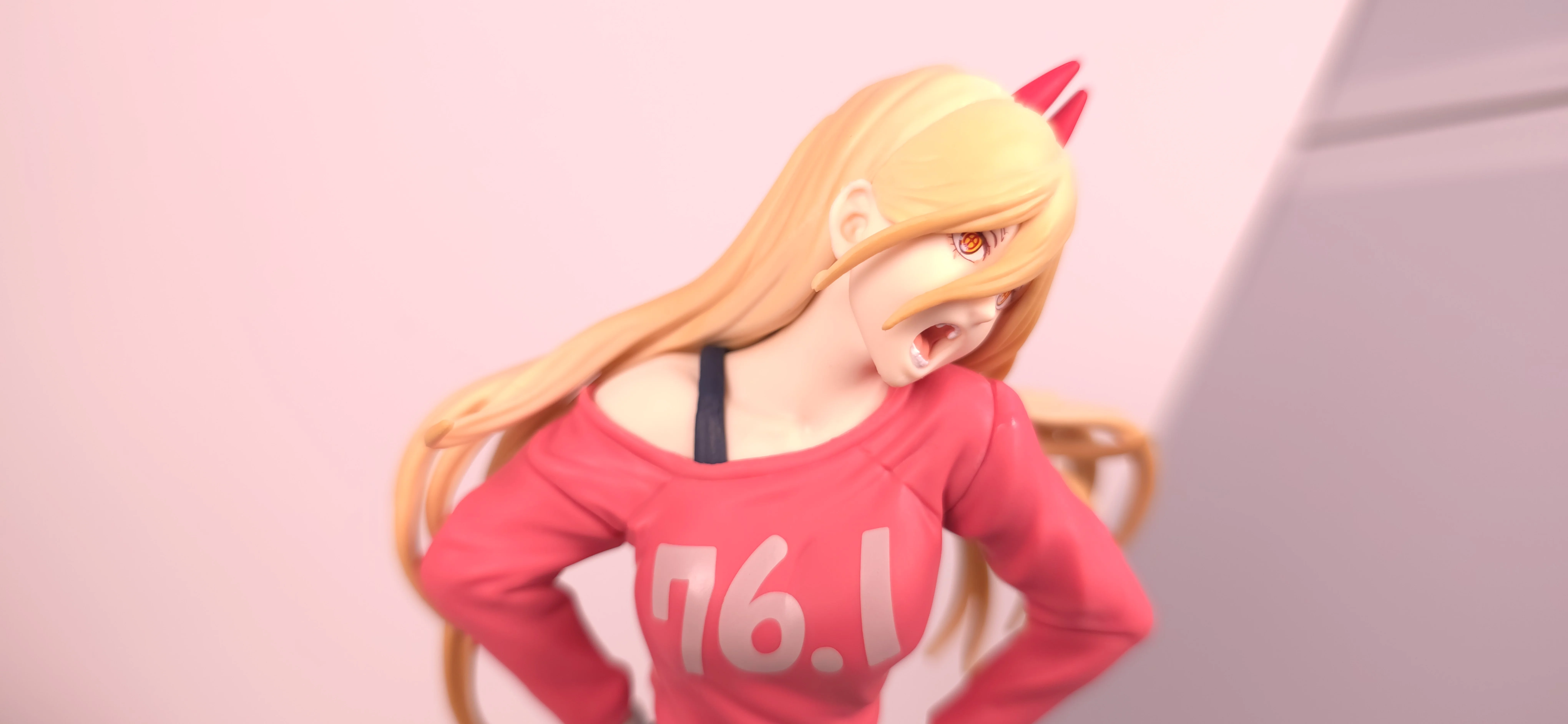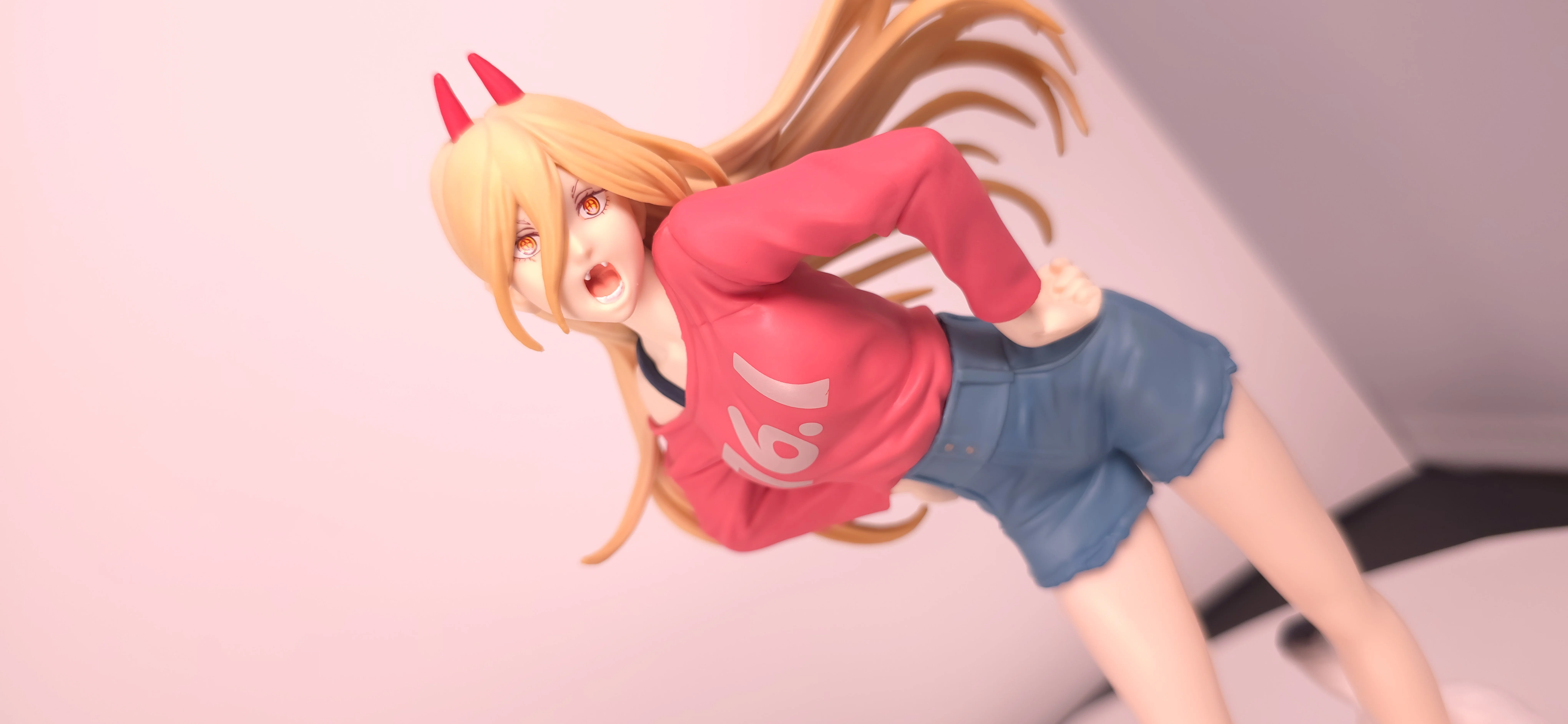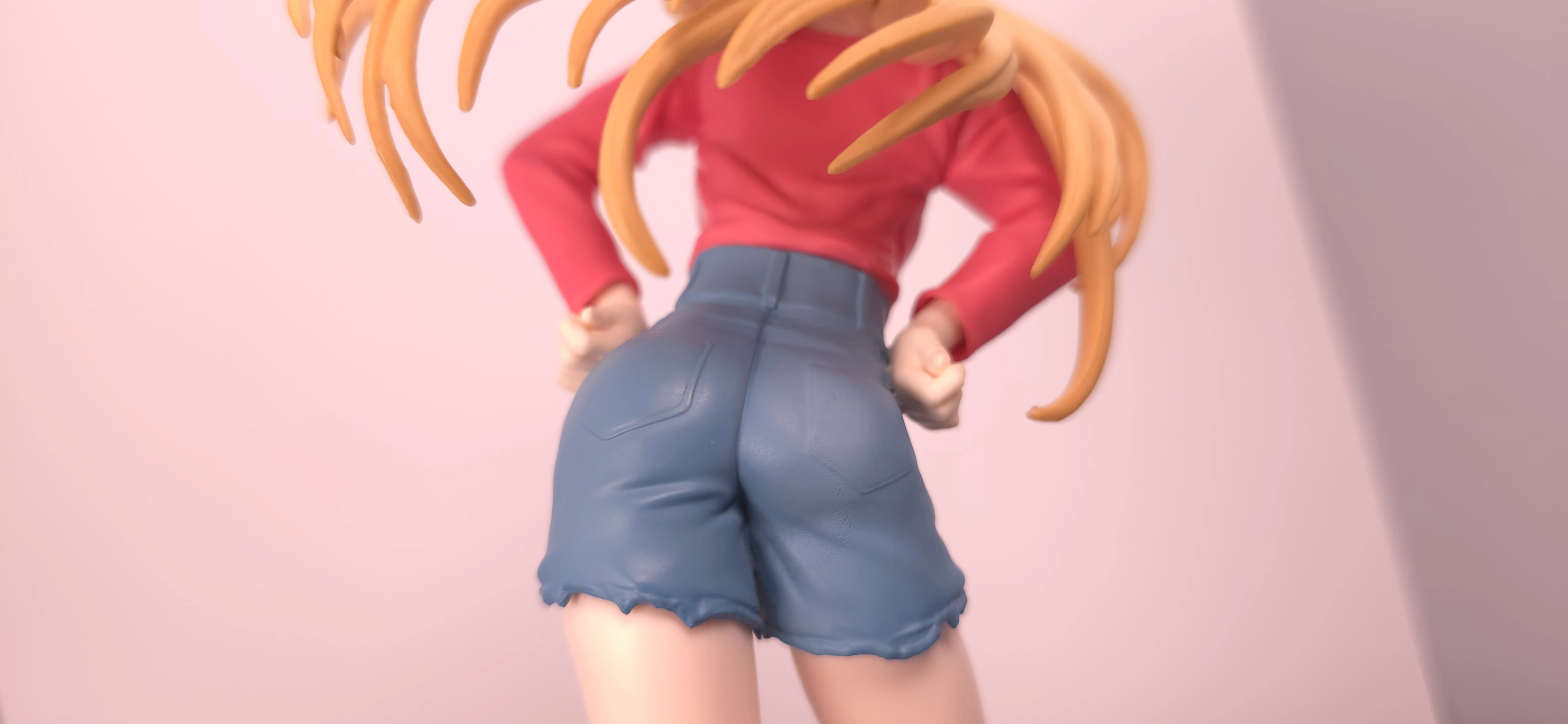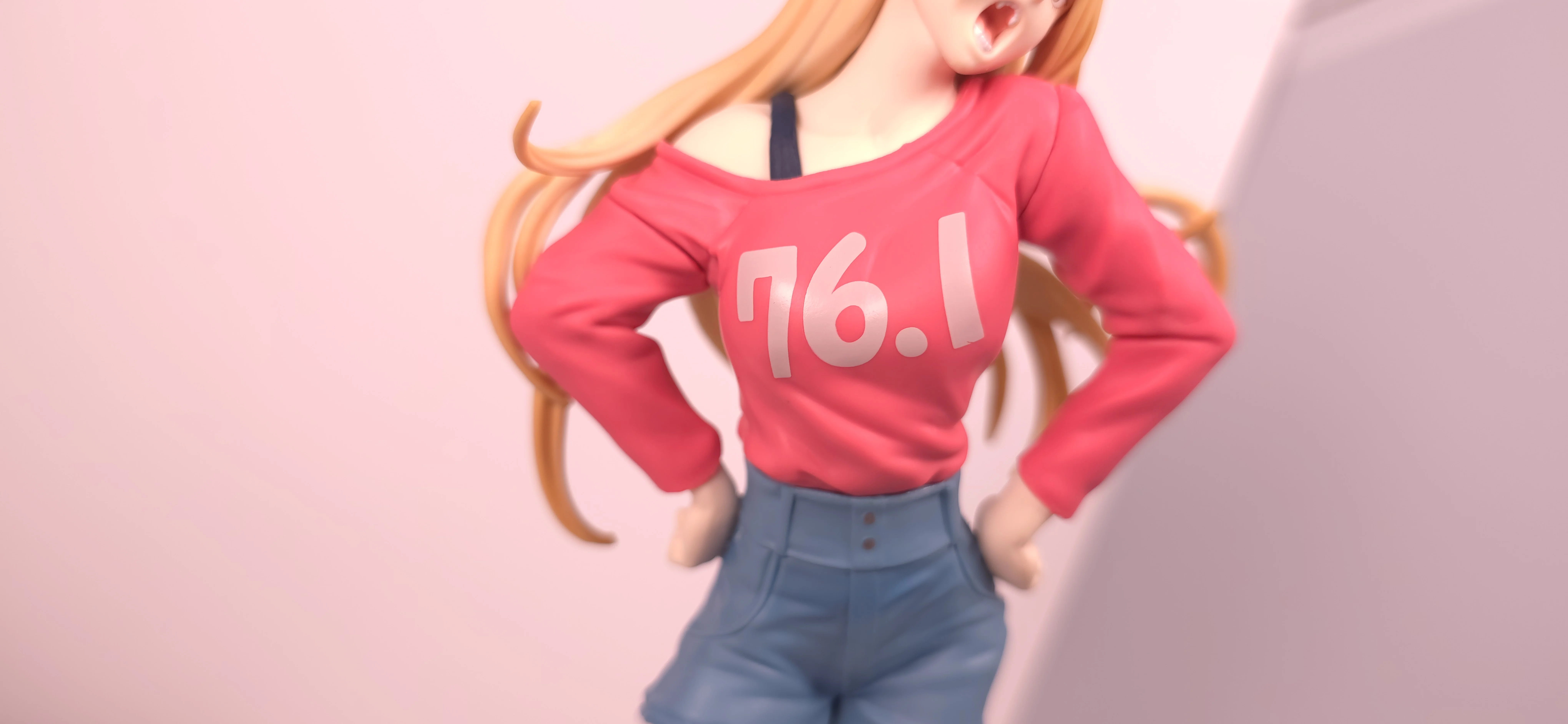 | 特徴 | 『チェンソーマン』の「パワー」が、セガプライズのオリジナルブランド「Luminasta(ルミナスタ)」で立体化!※レビュー掲載画像は再登場版。 「Luminasta(ルミナスタ)」ブランドの特徴は、どのフィギュアにも何等か特異的な輝くポイントを持たせ、キャラの魅力を際立たせるところにある。 「キャラクターらしさ」を見出し、より鋭利に表現すると言う点でプライズ品ブランドの中では、それなりに信頼できる。 フィギュアのサイズは、全高約22cm。 素材不明。 全体の印象としては、ファンキーでポップなファッションがクソガキ感のある表情とマッチしており、パワーの傲慢で威勢のいい性格を感じる。また、スタイルの良さを見せつけるようなポーズも煽情的でgood! 鮮やかなピンクレッドに数字のプリントされたシャツに、すらっとした流線のウエストがハッキリと分かるデニムのショートパンツ。足元には頬擦りする猫と、オレンジレッドのラインと靴紐が特徴的なスニーカー。 シャツに書かれた「76.1」には、胸パッド抜きのバストサイズ説や、ロック系音楽を流すラジオ局の古い周波数帯76.1MHz説等あるが明言はされていない。 シャツはワンショルダーに着崩しており、大胆に開いた肩にかかる黒のブラ紐が素晴らしい! また、腰のラインがハッキリわかるぴちっとしたデニムを背後から見ると、しっかりと膨らみのある健康的なヒップが堪能できて最高! 印象的なポーズにより躍動する赤みがかった金髪もそれなりに見ごたえがある。 表情については、正面から見る分には良い印象だが、少し角度を変えるとのっぺり平たくなるので、角度限定か。 パワーのアクティブな印象がありありと感じられる、見ていてこちらまで元気になれる出来の良いフィギュアだった。 |