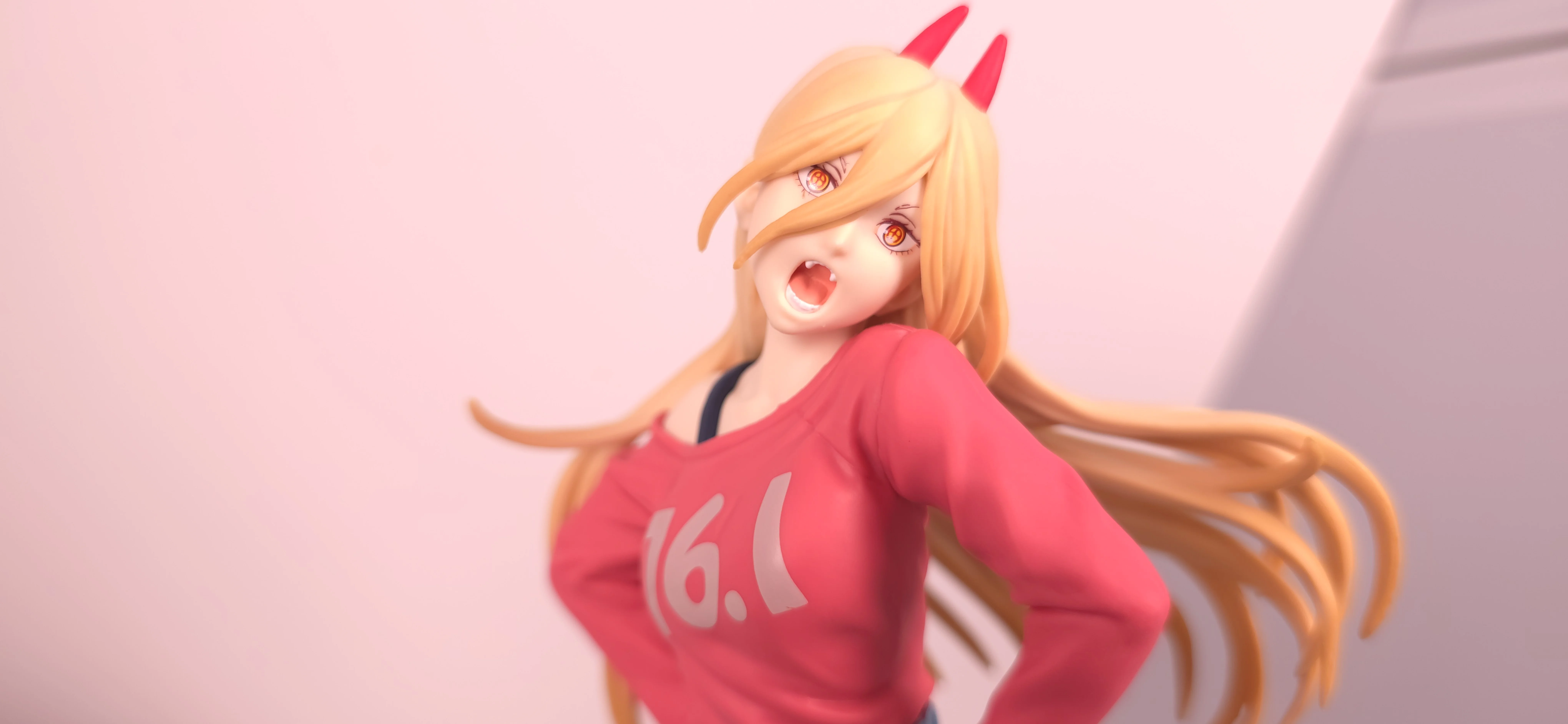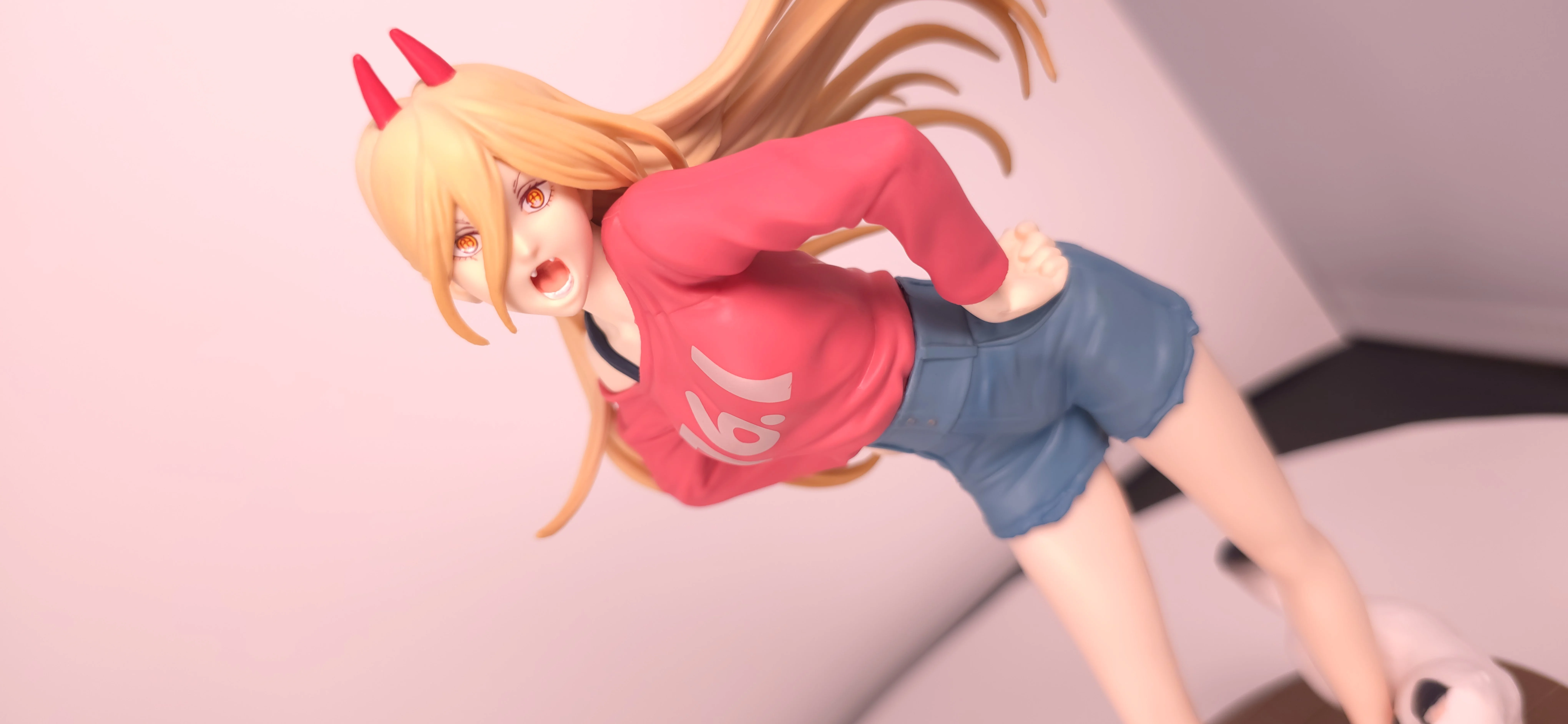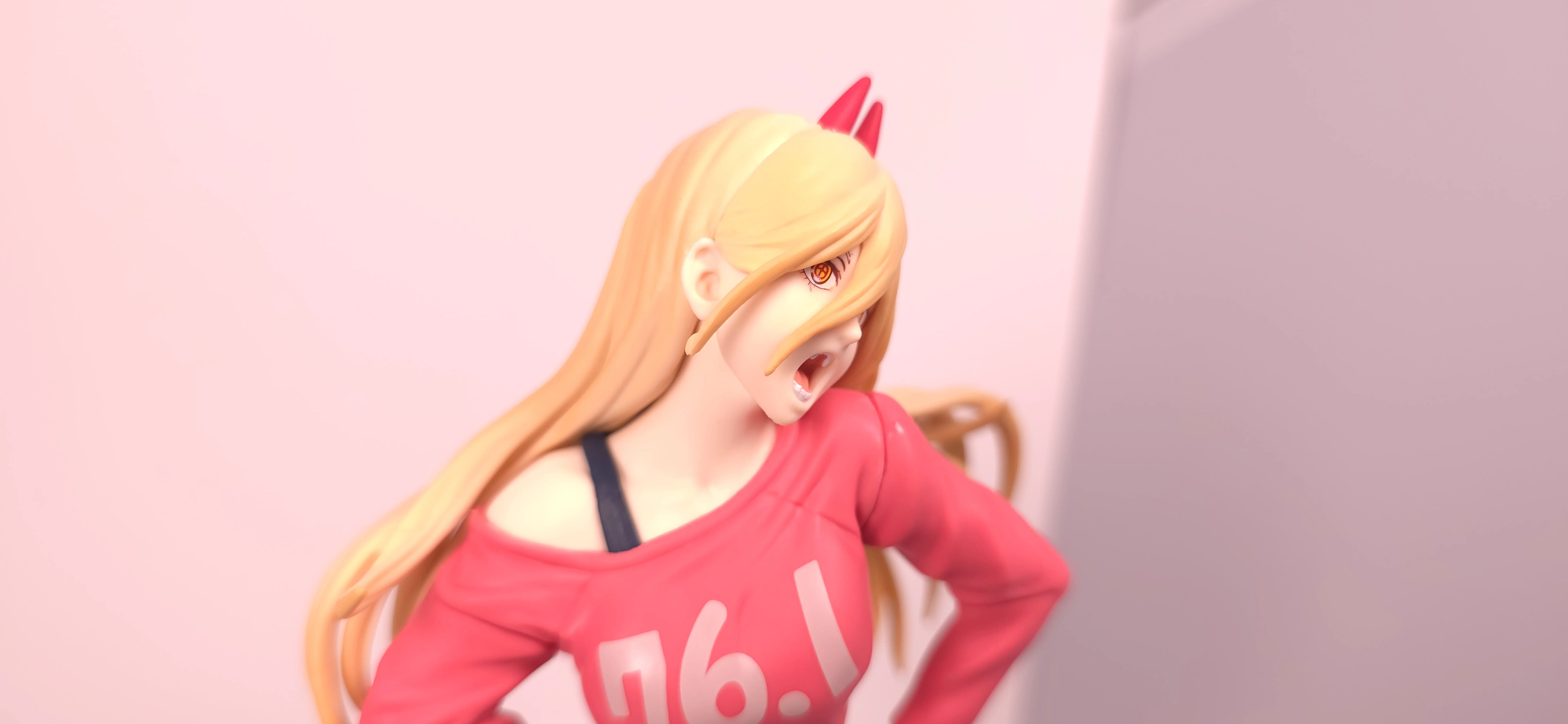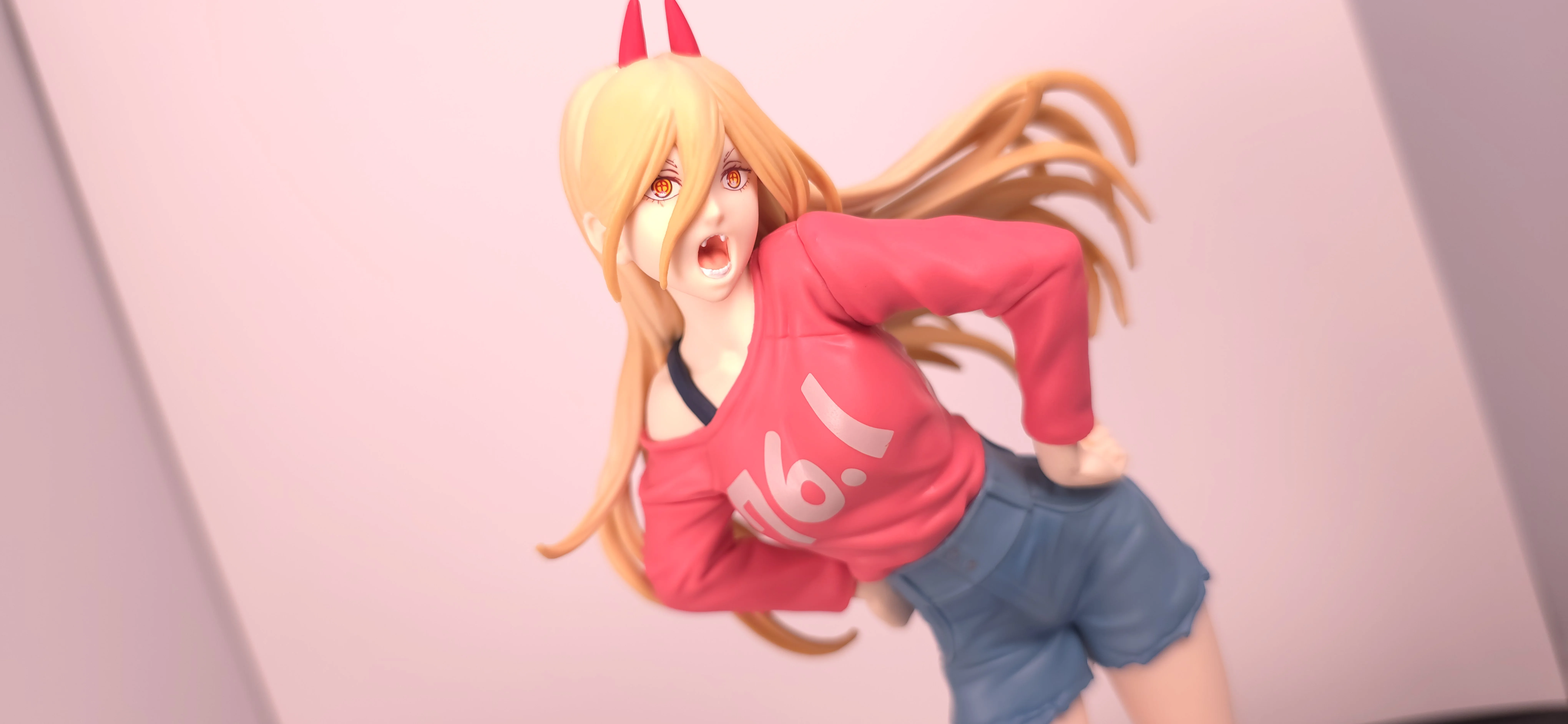 | 特徴 | 『チェンソーマン』の「パワー」が、セガプライズのオリジナルブランド「Luminasta(ルミナスタ)」で立体化!※レビュー掲載画像は再登場版。 「Luminasta(ルミナスタ)」ブランドの特徴は、どのフィギュアにも何等か特異的な輝くポイントを持たせ、キャラの魅力を際立たせるところにある。 「キャラクターらしさ」を見出し、より鋭利に表現すると言う点でプライズ品ブランドの中では、それなりに信頼できる。 フィギュアのサイズは、全高約22cm。 素材不明。 全体の印象としては、ファンキーでポップなファッションがクソガキ感のある表情とマッチしており、パワーの傲慢で威勢のいい性格を感じる。また、スタイルの良さを見せつけるようなポーズも煽情的でgood! 鮮やかなピンクレッドに数字のプリントされたシャツに、すらっとした流線のウエストがハッキリと分かるデニムのショートパンツ。足元には頬擦りする猫と、オレンジレッドのラインと靴紐が特徴的なスニーカー。 シャツに書かれた「76.1」には、胸パッド抜きのバストサイズ説や、ロック系音楽を流すラジオ局の古い周波数帯76.1MHz説等あるが明言はされていない。 シャツはワンショルダーに着崩しており、大胆に開いた肩にかかる黒のブラ紐が素晴らしい! また、腰のラインがハッキリわかるぴちっとしたデニムを背後から見ると、しっかりと膨らみのある健康的なヒップが堪能できて最高! 印象的なポーズにより躍動する赤みがかった金髪もそれなりに見ごたえがある。 表情については、正面から見る分には良い印象だが、少し角度を変えるとのっぺり平たくなるので、角度限定か。 パワーのアクティブな印象がありありと感じられる、見ていてこちらまで元気になれる出来の良いフィギュアだった。 |