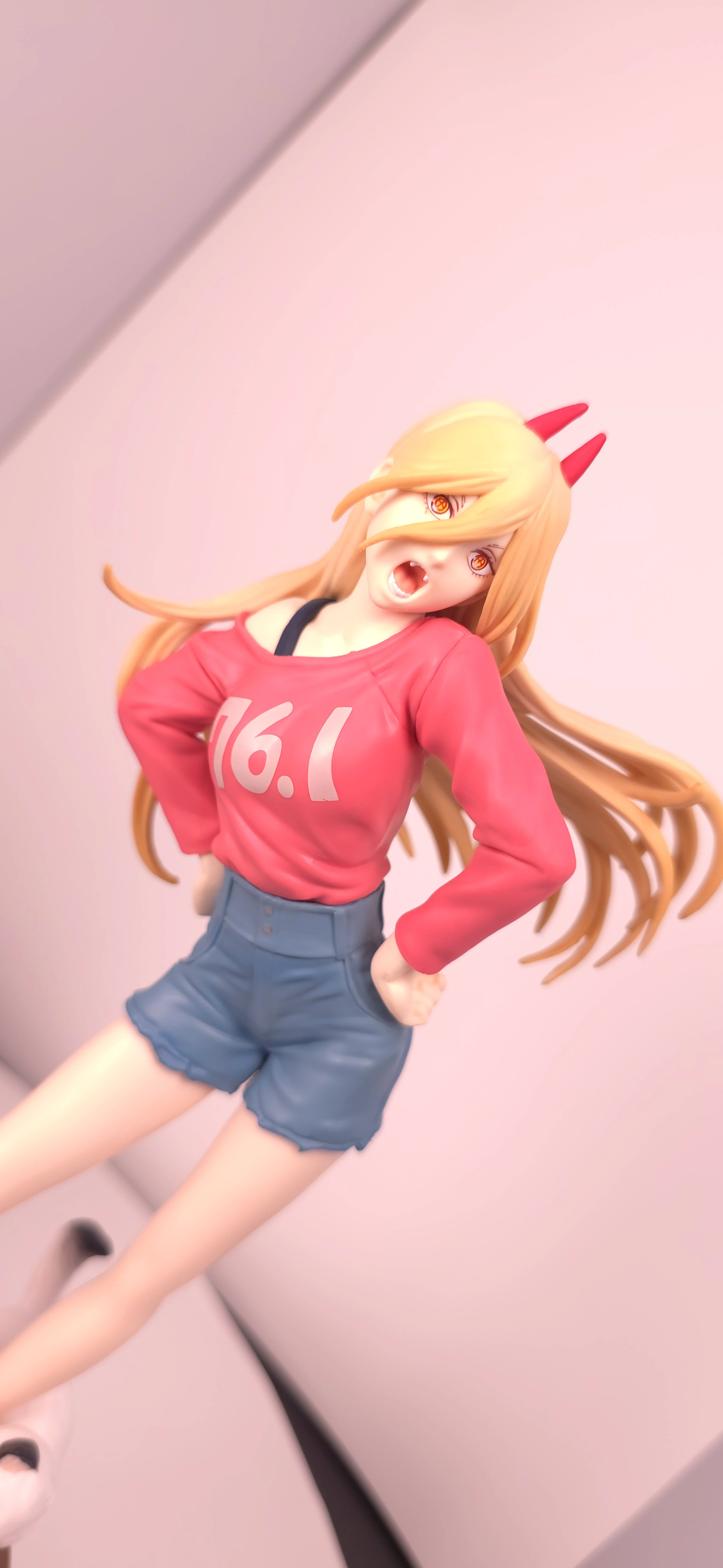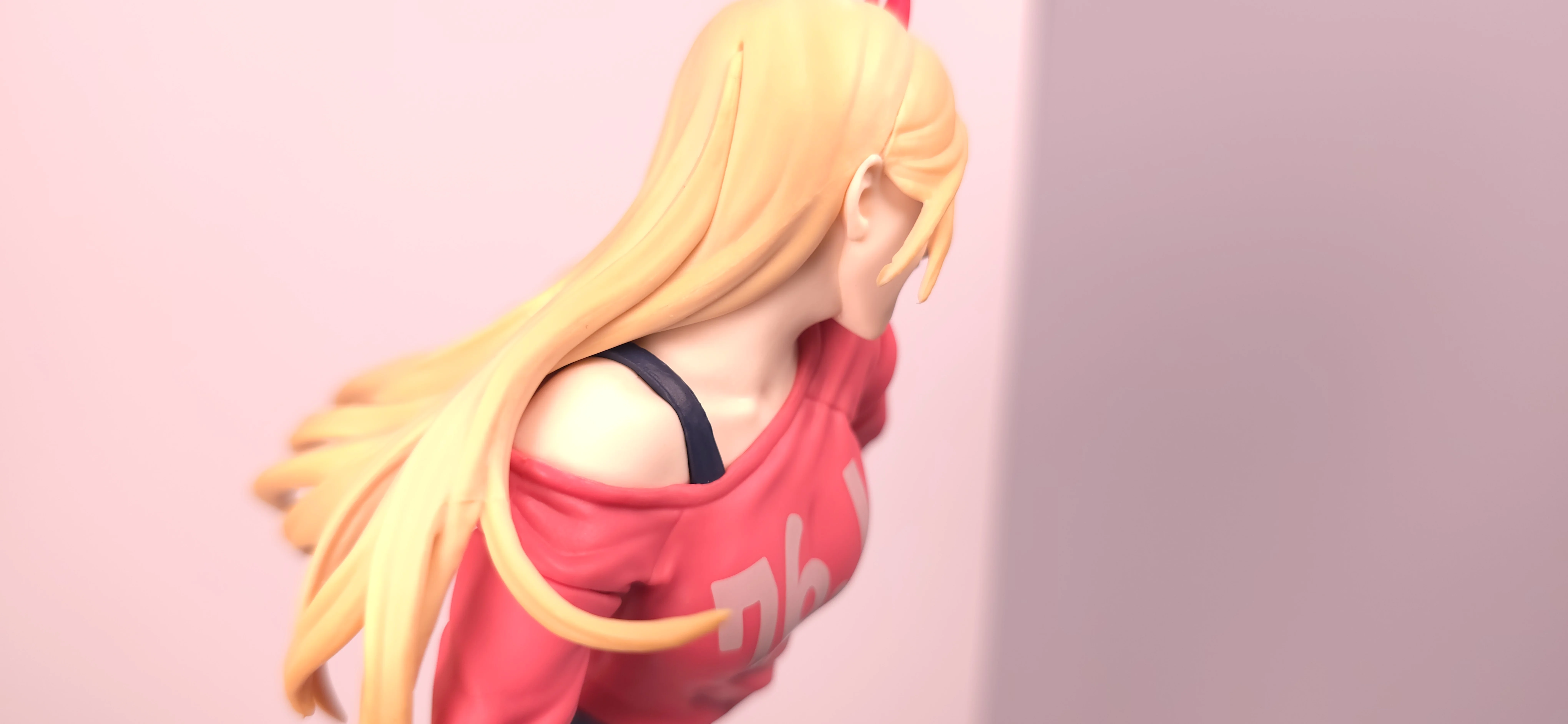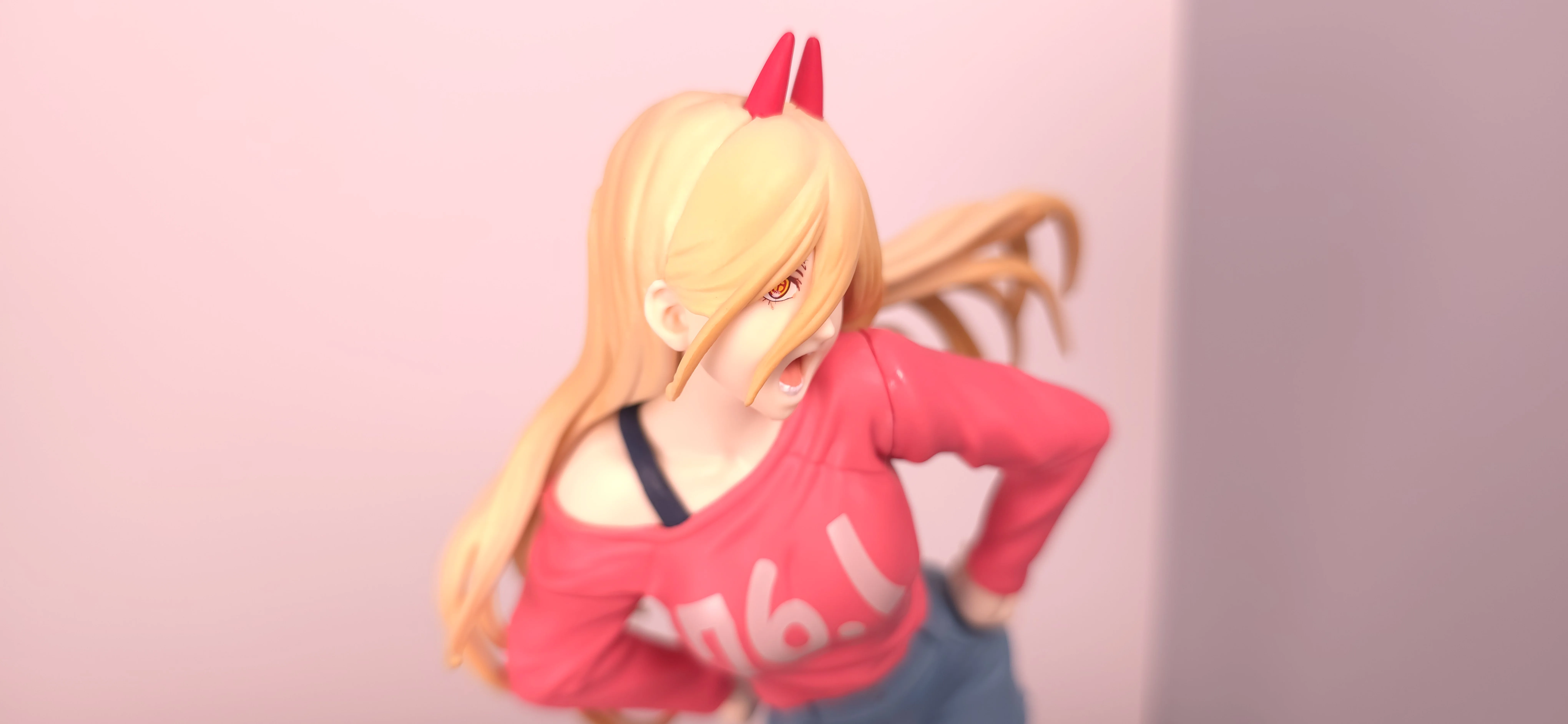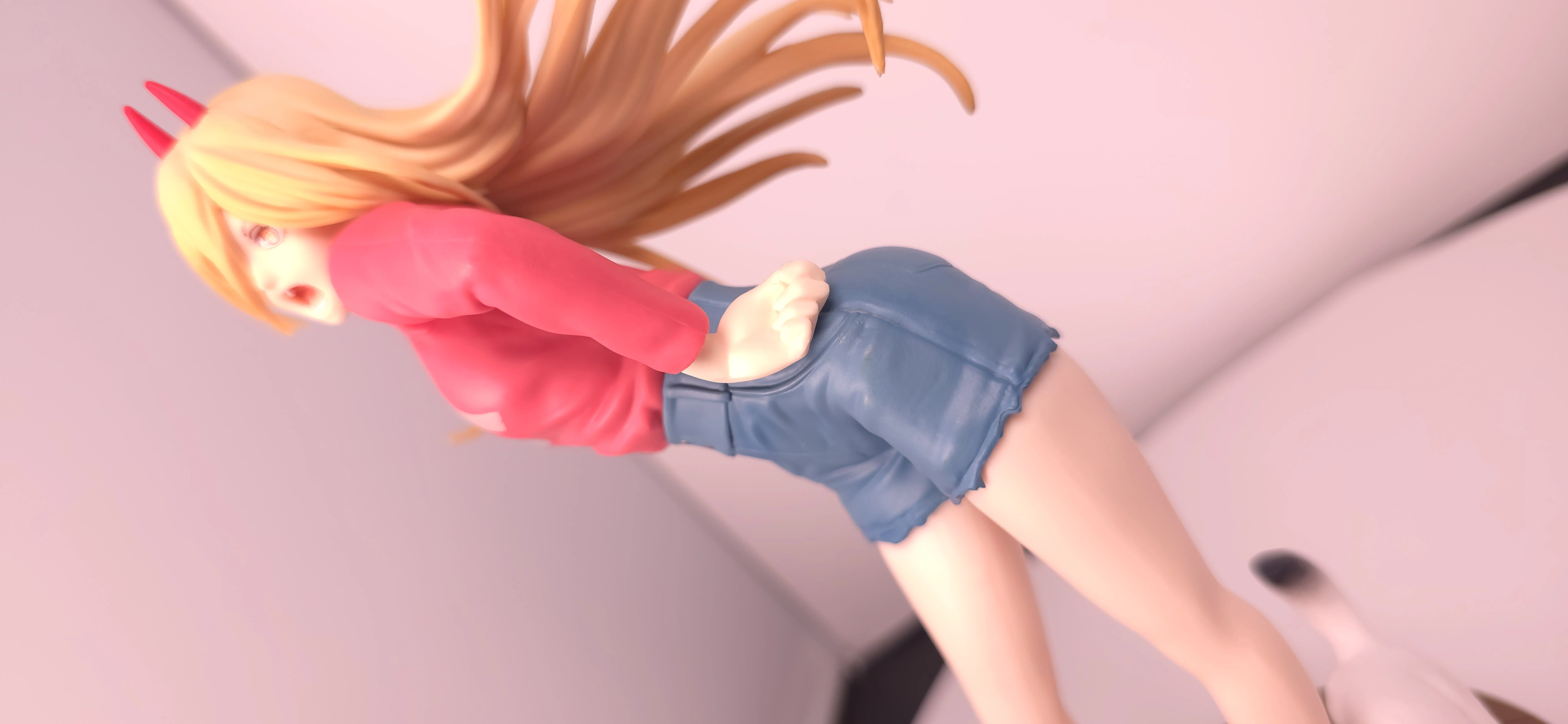 | 特徴 | 『チェンソーマン』の「パワー」が、セガプライズのオリジナルブランド「Luminasta(ルミナスタ)」で立体化!※レビュー掲載画像は再登場版。 「Luminasta(ルミナスタ)」ブランドの特徴は、どのフィギュアにも何等か特異的な輝くポイントを持たせ、キャラの魅力を際立たせるところにある。 「キャラクターらしさ」を見出し、より鋭利に表現すると言う点でプライズ品ブランドの中では、それなりに信頼できる。 フィギュアのサイズは、全高約22cm。 素材不明。 全体の印象としては、ファンキーでポップなファッションがクソガキ感のある表情とマッチしており、パワーの傲慢で威勢のいい性格を感じる。また、スタイルの良さを見せつけるようなポーズも煽情的でgood! 鮮やかなピンクレッドに数字のプリントされたシャツに、すらっとした流線のウエストがハッキリと分かるデニムのショートパンツ。足元には頬擦りする猫と、オレンジレッドのラインと靴紐が特徴的なスニーカー。 シャツに書かれた「76.1」には、胸パッド抜きのバストサイズ説や、ロック系音楽を流すラジオ局の古い周波数帯76.1MHz説等あるが明言はされていない。 シャツはワンショルダーに着崩しており、大胆に開いた肩にかかる黒のブラ紐が素晴らしい! また、腰のラインがハッキリわかるぴちっとしたデニムを背後から見ると、しっかりと膨らみのある健康的なヒップが堪能できて最高! 印象的なポーズにより躍動する赤みがかった金髪もそれなりに見ごたえがある。 表情については、正面から見る分には良い印象だが、少し角度を変えるとのっぺり平たくなるので、角度限定か。 パワーのアクティブな印象がありありと感じられる、見ていてこちらまで元気になれる出来の良いフィギュアだった。 |