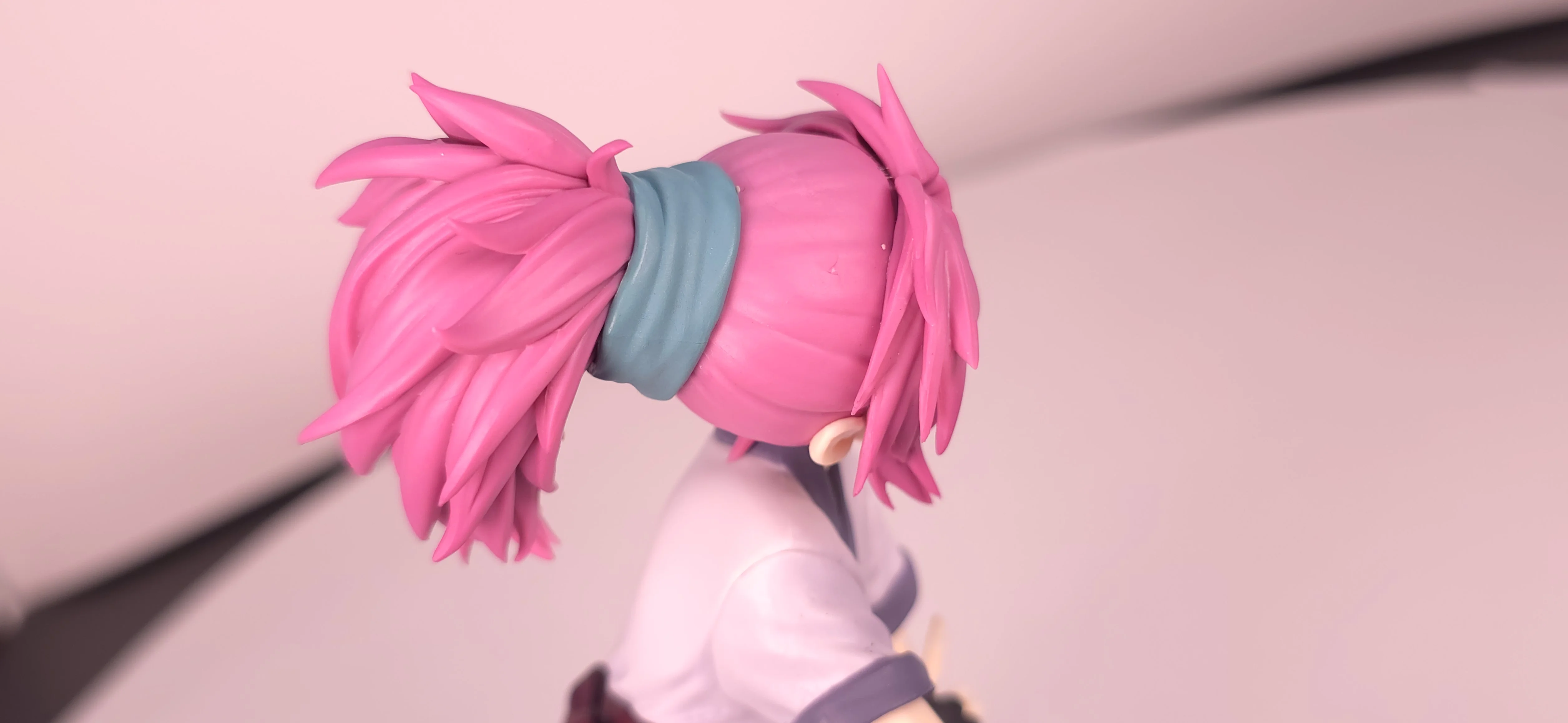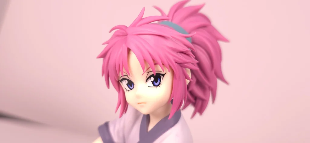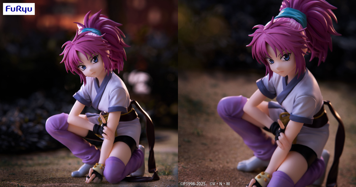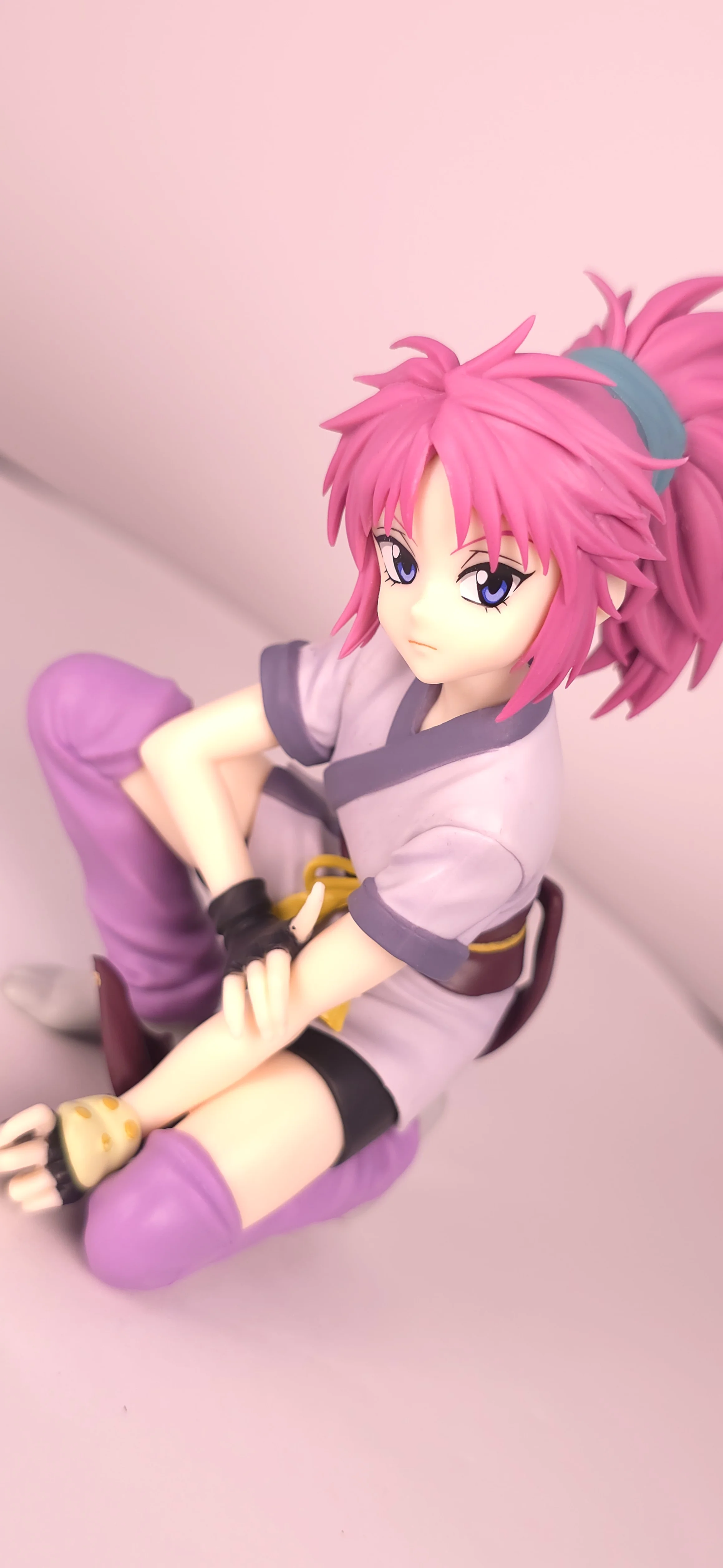 | 特徴 | 「いくよ…念糸縫合!!」 フリュープライズより『HUNTER×HUNTER』の「マチ=コマチネ」が、ぬーどるストッパーになって登場! 団員ナンバー3にして、旅団腕相撲ランキング6位(ノブナガは9位w)の初期メン。 クロロが26~7歳なので多分20~25歳ぐらいか? 変化系能力の「念糸縫合」は、糸で何でも縫い合わせたり、追跡したりととにかく便利。 マチがいなかったら、ヒソカはちぎれた腕をどうしたのだろう… ぬーどるストッパーなので小さめの全高約10cm。 旧アニメ版は青紫の髪色だったが、今回は新アニメ版のピンク。 しゃがんで警戒しているようなポーズに、キリっとした瞳で見上げている。 原作にこんな描写があったかは知らん。記憶にはないけど。 開封したらおでこに茶色の汚れがついており顔のアップが残念だが、まぁ立体化に乏しいマチの服装をまじまじと観賞できるだけで十分。 ぼさっとしたピンク髪にグレーのバンダナが印象的。 紫系統で統一された和服のシワやヒモ等のディテールも細かく再現されている。 手の甲についた黄色の謎物体。見方によっては芋虫っぽいかもしれないが、実はただの針山。 この針山から針を抜いて縫合している。 ぶっちゃけこのフィギュアの手の甲を見て、これが針山だとは思わないだろうが、ぬーすとに求めすぎても良くないだろう。 あとは濃い紫のルーズソックス的なレッグウォーマーのクシャっとした表現も丁寧に造形されており見どころの一つ。 股間周りについては黒のスパッツで、エロは無し。 総括すると、コンパクトなサイズの割に「マチ=コマチネ」の魅力がぎゅっと詰まっており、お値段以上に楽しめるフィギュアだった。 |
