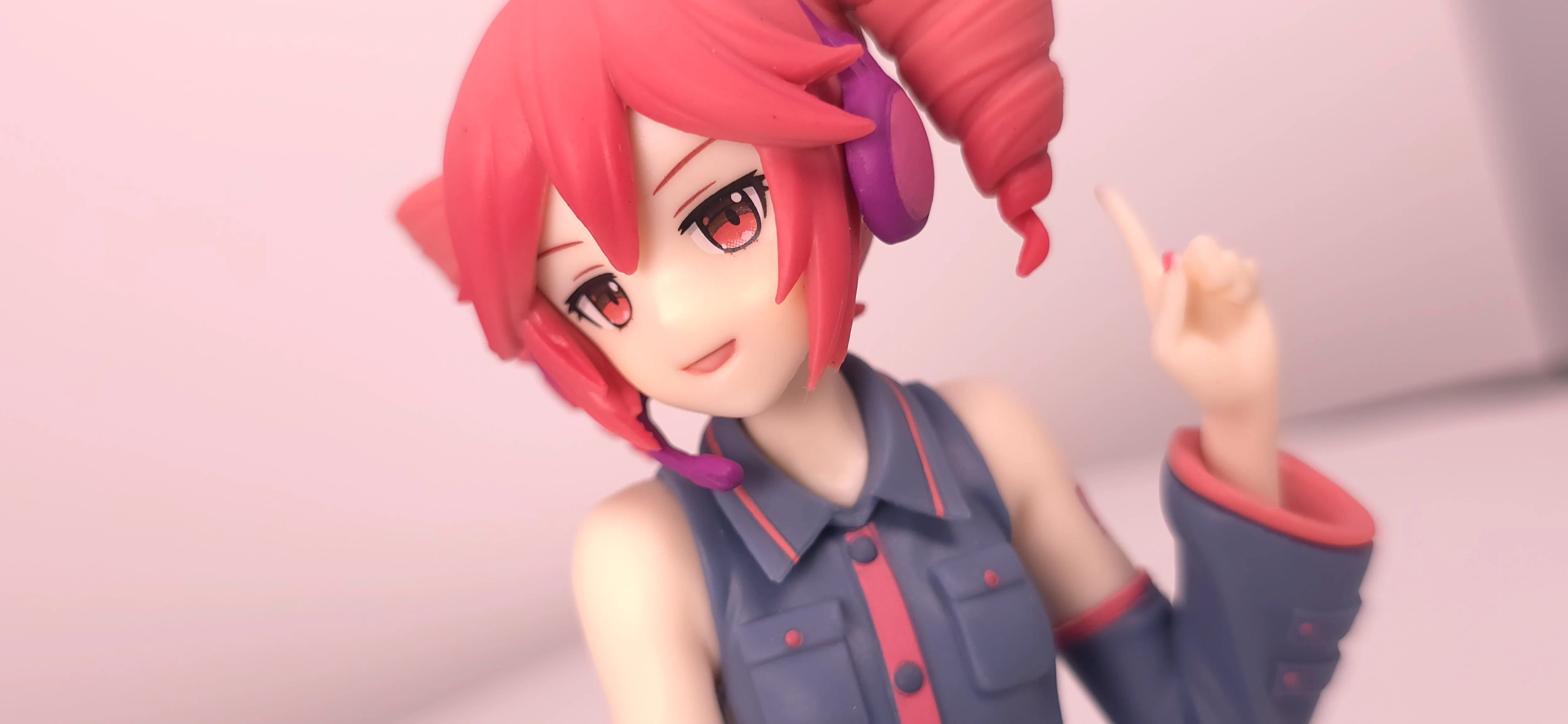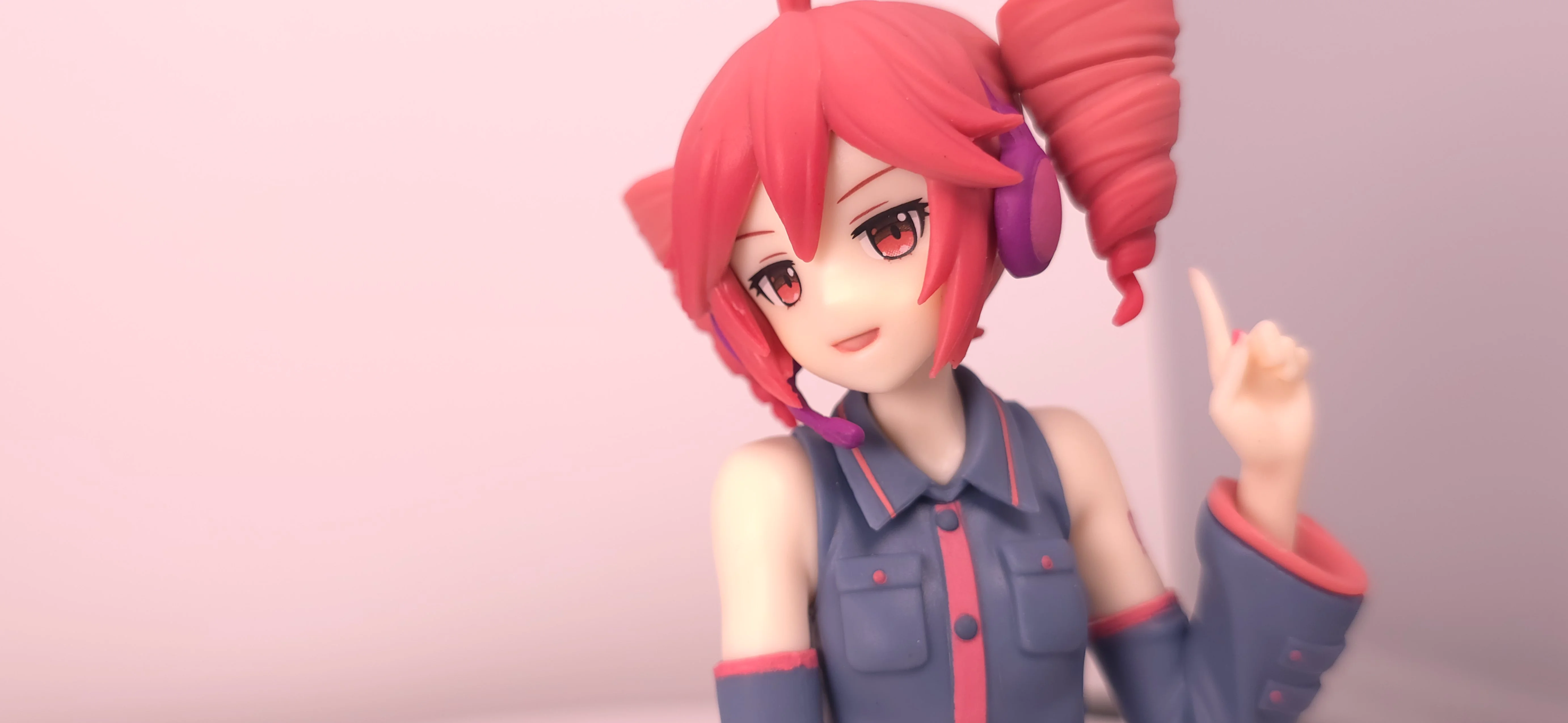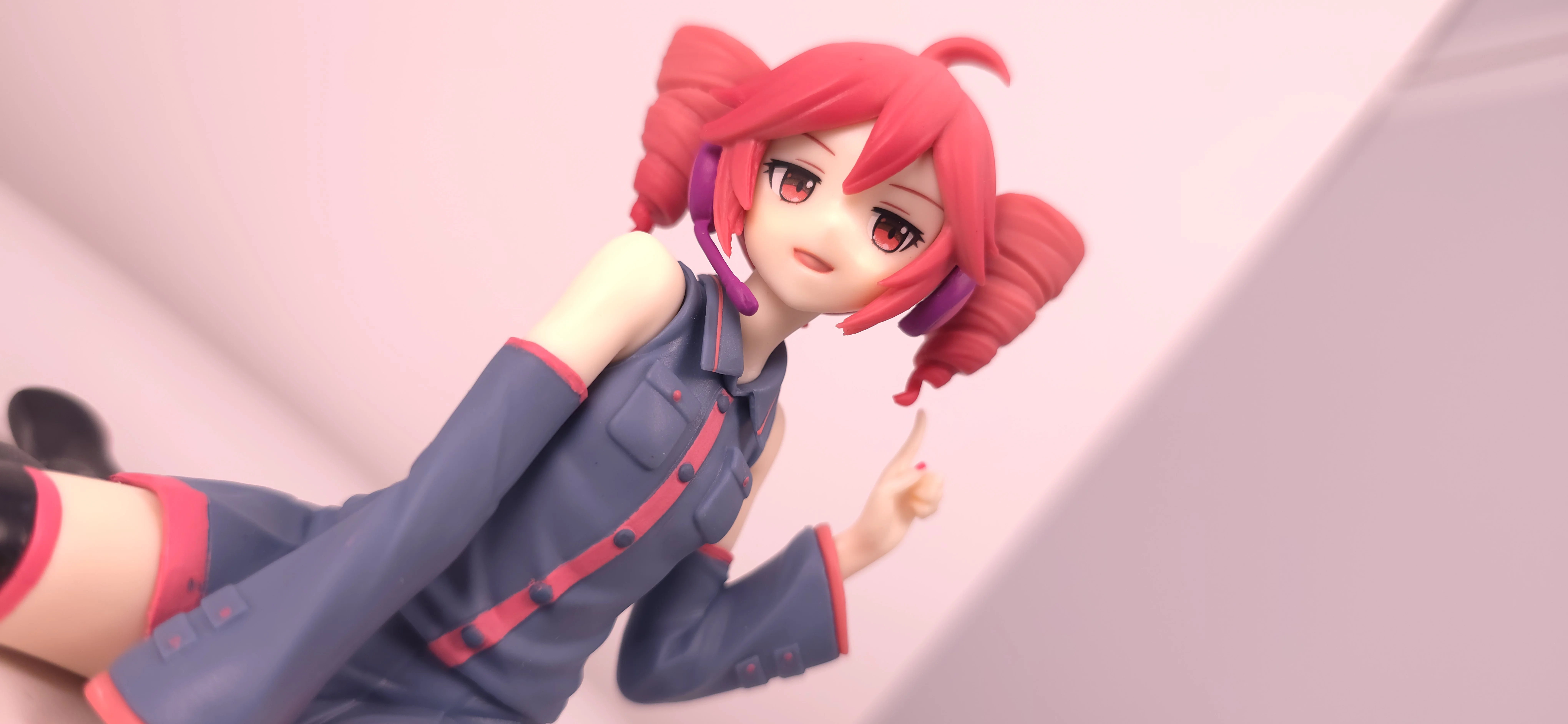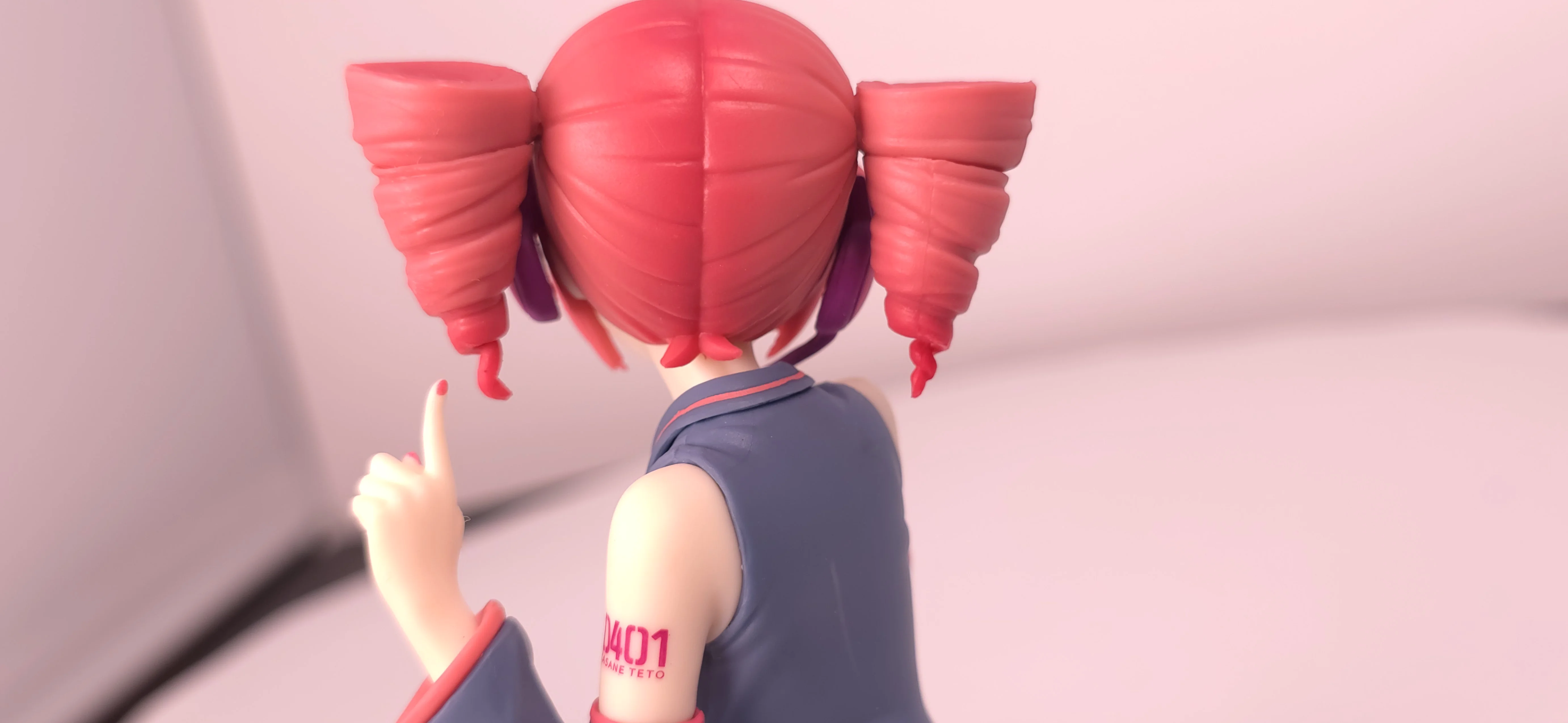 | 特徴 | 2008年4月1日に生まれた初音ミクと鏡音レン・リンに次ぐVOCALOID。 というのは大嘘で、2008年エイプリルフールに2ch民が作った偽物。 そんなのがなんで今流行ってるかというと、2023年に歌声合成ソフト「SysthesizerV AI」に対応したことが契機。 これはAIのディープラーニング技術を用いることで、人間レベルの自然な歌声を表現できる代物。 AIの現代技術により15年の時を経て復活したのだ。 ※権利的には元ネタのクリプトン社が握っているので、このサイトではVOCALOIDタグにしている。 そんなウソから生まれた大出世歌姫がセガプライズの「ちょこのせ」シリーズで立体化した! サイズは全長約8×14cm。 素材は知らん。 「ちょこのせ」シリーズの魅力はそのサイズと台座が無いことにある。 フィギュアケースで一番場所をとるのは大体の場合、台座だ。 このシリーズは別のフィギュアの台座や、台座と台座の間に置くことができるため、ケース内のスカスカとした印象を払拭してくれる。 フィギュア自体の感想に移ると、先ず目に留まるのが美しい真紅の流し目。 赤いネイルの人差し指を立てて余裕のある笑みが、得意げに講釈垂れているような独特の魅力を感じる。 また、鮮やかなコーラルレッドのドリルツインテールもその魅力をさらに引き立てている(どちらかというとドリルよりもチョココロネかも)。 左腕に書いてある「0401」は2008年4月1日のエイプリルフールをかけたもの。 足元に目を受けると黒のロングブーツが放つ光沢が、わずかに見える白の絶対領域を煽情的に魅せる。 パンツは、シャツやスカートの基調色と同じグレイッシュな青紫。 クロッチの縫い目もあるし、生パンかな? 現状、プレ値になっている「POP UP PARADE」と「吉原ラメント」以外だと、これが一番「重音テト」らしいフィギュアだ。 |