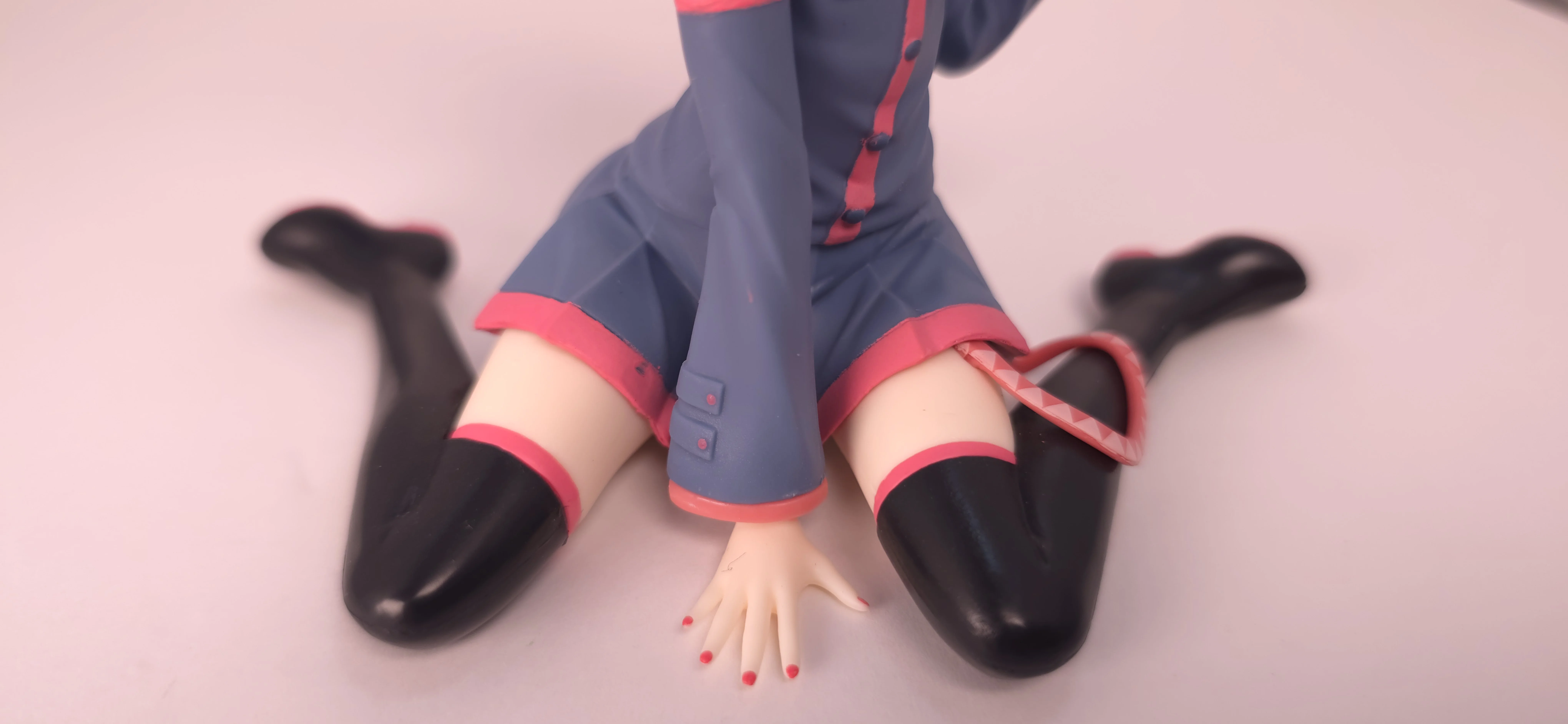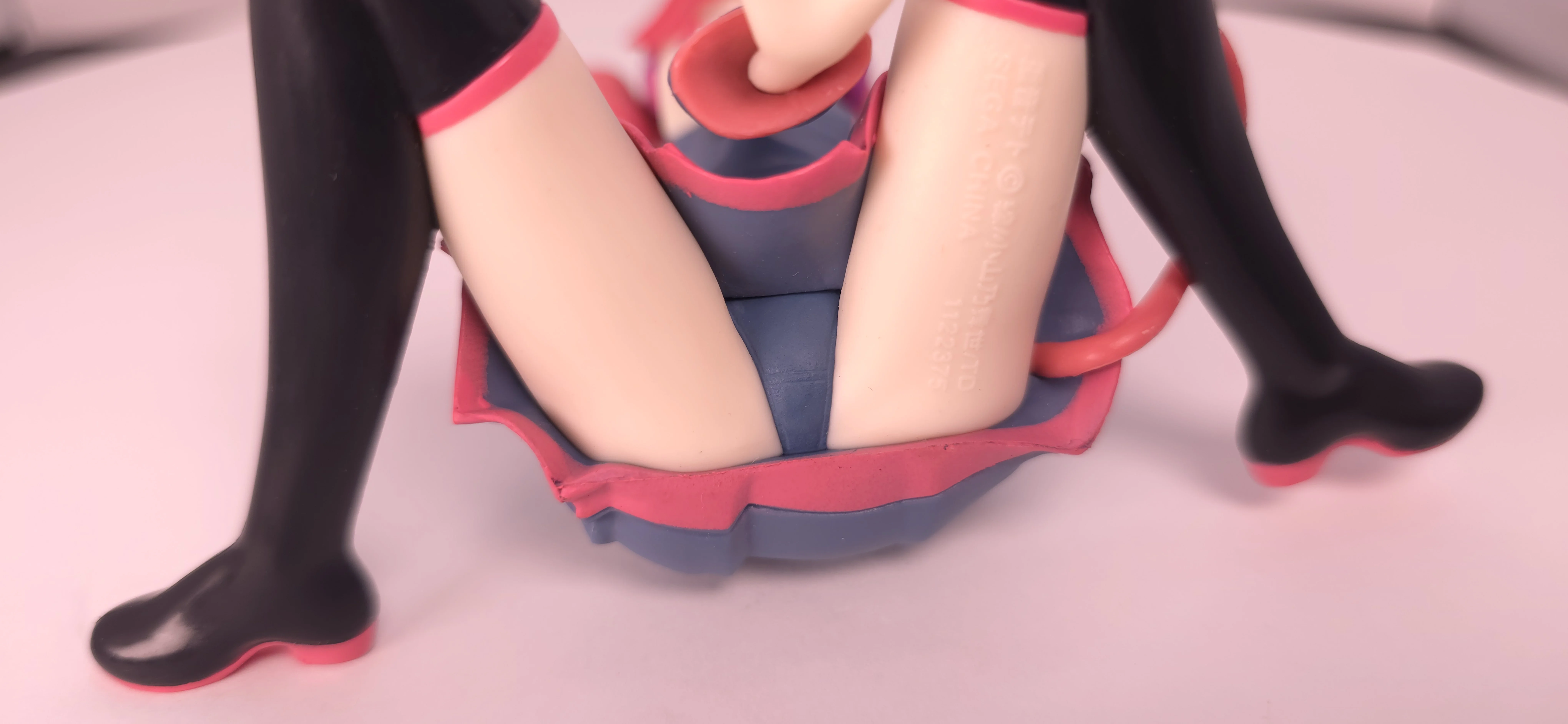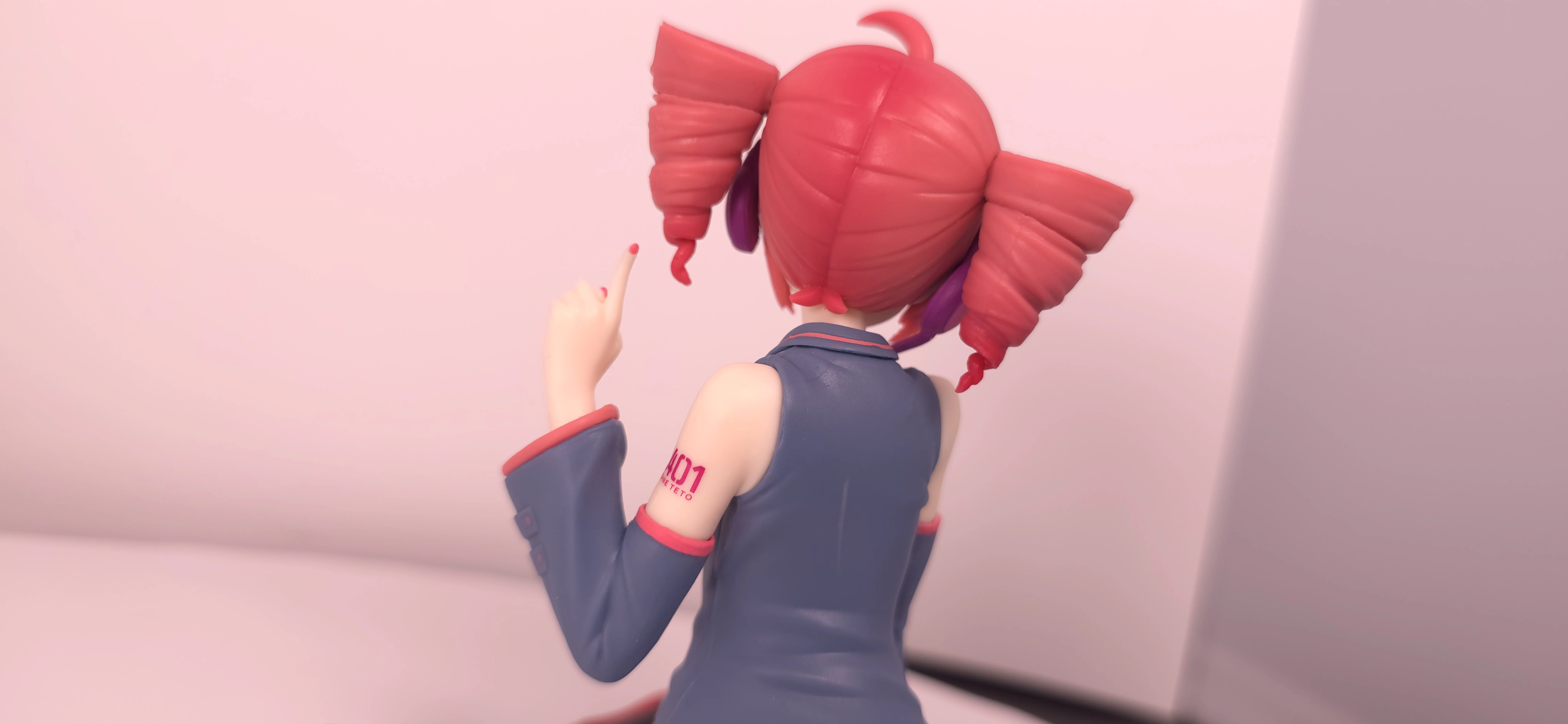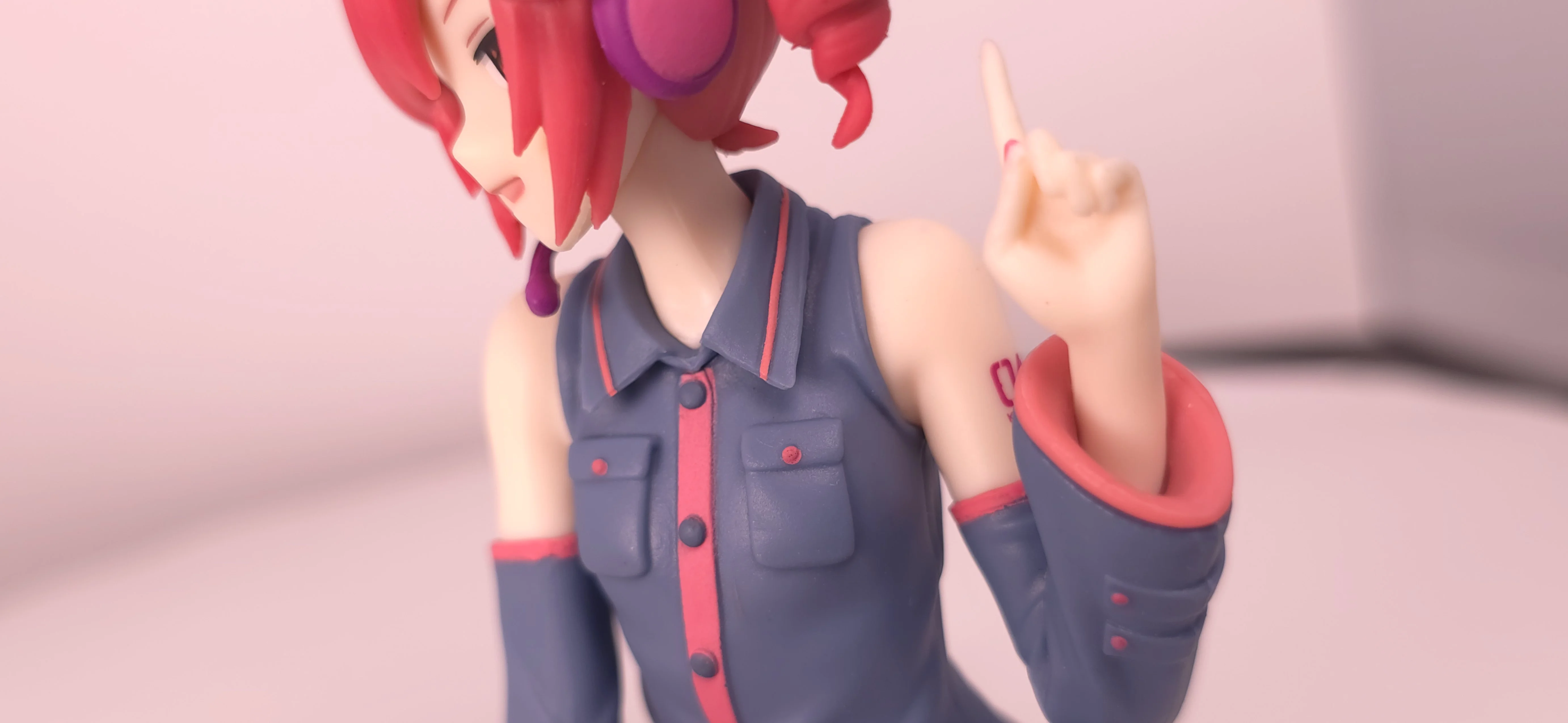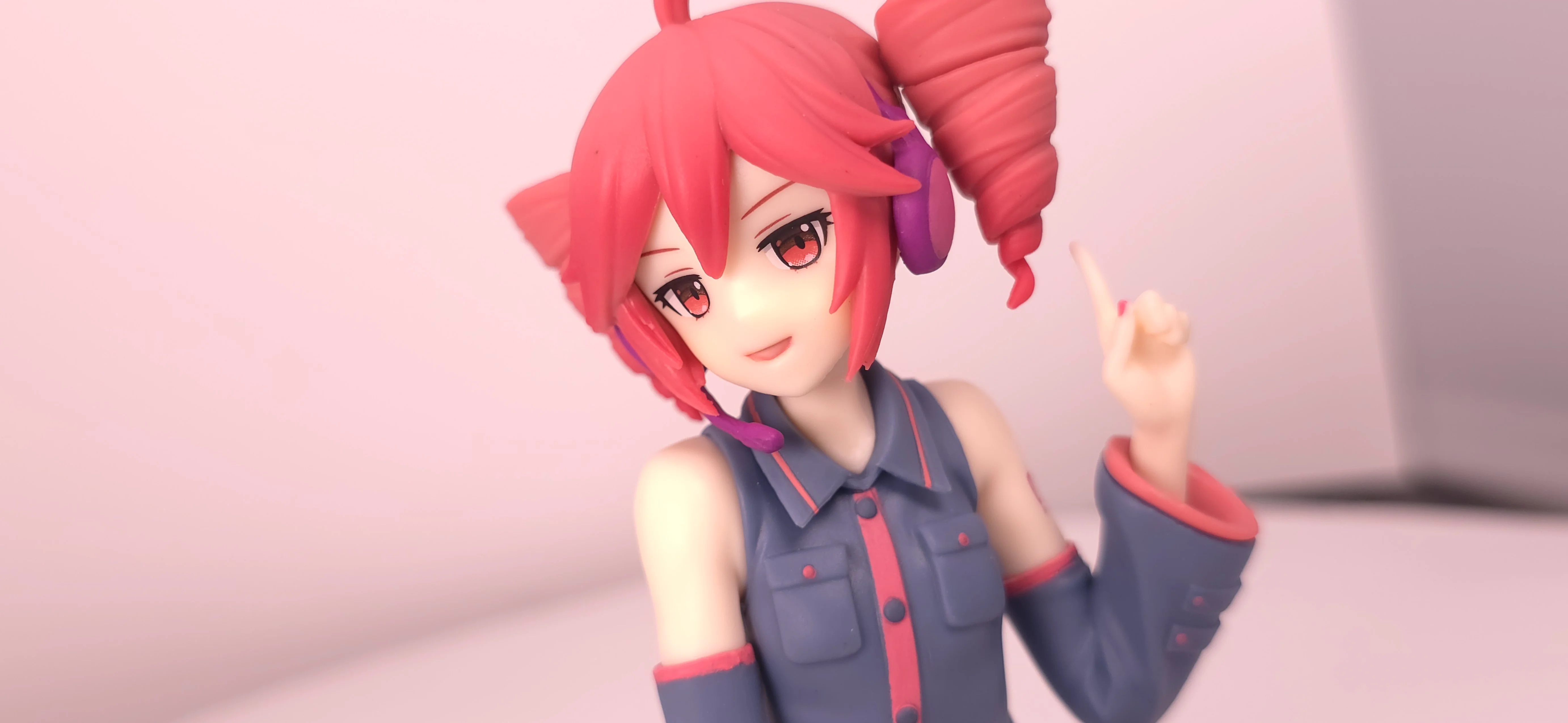 | 特徴 | 2008年4月1日に生まれた初音ミクと鏡音レン・リンに次ぐVOCALOID。 というのは大嘘で、2008年エイプリルフールに2ch民が作った偽物。 そんなのがなんで今流行ってるかというと、2023年に歌声合成ソフト「SysthesizerV AI」に対応したことが契機。 これはAIのディープラーニング技術を用いることで、人間レベルの自然な歌声を表現できる代物。 AIの現代技術により15年の時を経て復活したのだ。 ※権利的には元ネタのクリプトン社が握っているので、このサイトではVOCALOIDタグにしている。 そんなウソから生まれた大出世歌姫がセガプライズの「ちょこのせ」シリーズで立体化した! サイズは全長約8×14cm。 素材は知らん。 「ちょこのせ」シリーズの魅力はそのサイズと台座が無いことにある。 フィギュアケースで一番場所をとるのは大体の場合、台座だ。 このシリーズは別のフィギュアの台座や、台座と台座の間に置くことができるため、ケース内のスカスカとした印象を払拭してくれる。 フィギュア自体の感想に移ると、先ず目に留まるのが美しい真紅の流し目。 赤いネイルの人差し指を立てて余裕のある笑みが、得意げに講釈垂れているような独特の魅力を感じる。 また、鮮やかなコーラルレッドのドリルツインテールもその魅力をさらに引き立てている(どちらかというとドリルよりもチョココロネかも)。 左腕に書いてある「0401」は2008年4月1日のエイプリルフールをかけたもの。 足元に目を受けると黒のロングブーツが放つ光沢が、わずかに見える白の絶対領域を煽情的に魅せる。 パンツは、シャツやスカートの基調色と同じグレイッシュな青紫。 クロッチの縫い目もあるし、生パンかな? 現状、プレ値になっている「POP UP PARADE」と「吉原ラメント」以外だと、これが一番「重音テト」らしいフィギュアだ。 |
