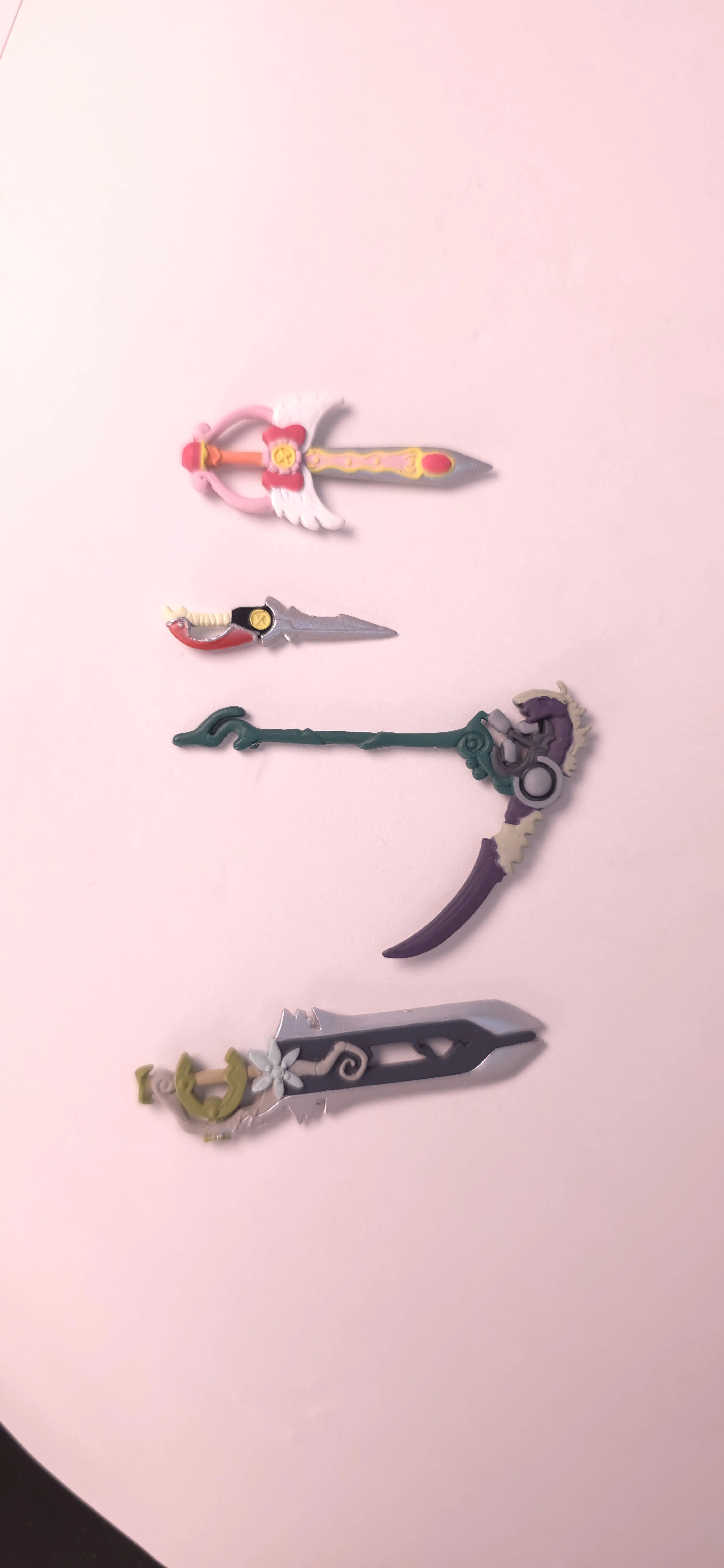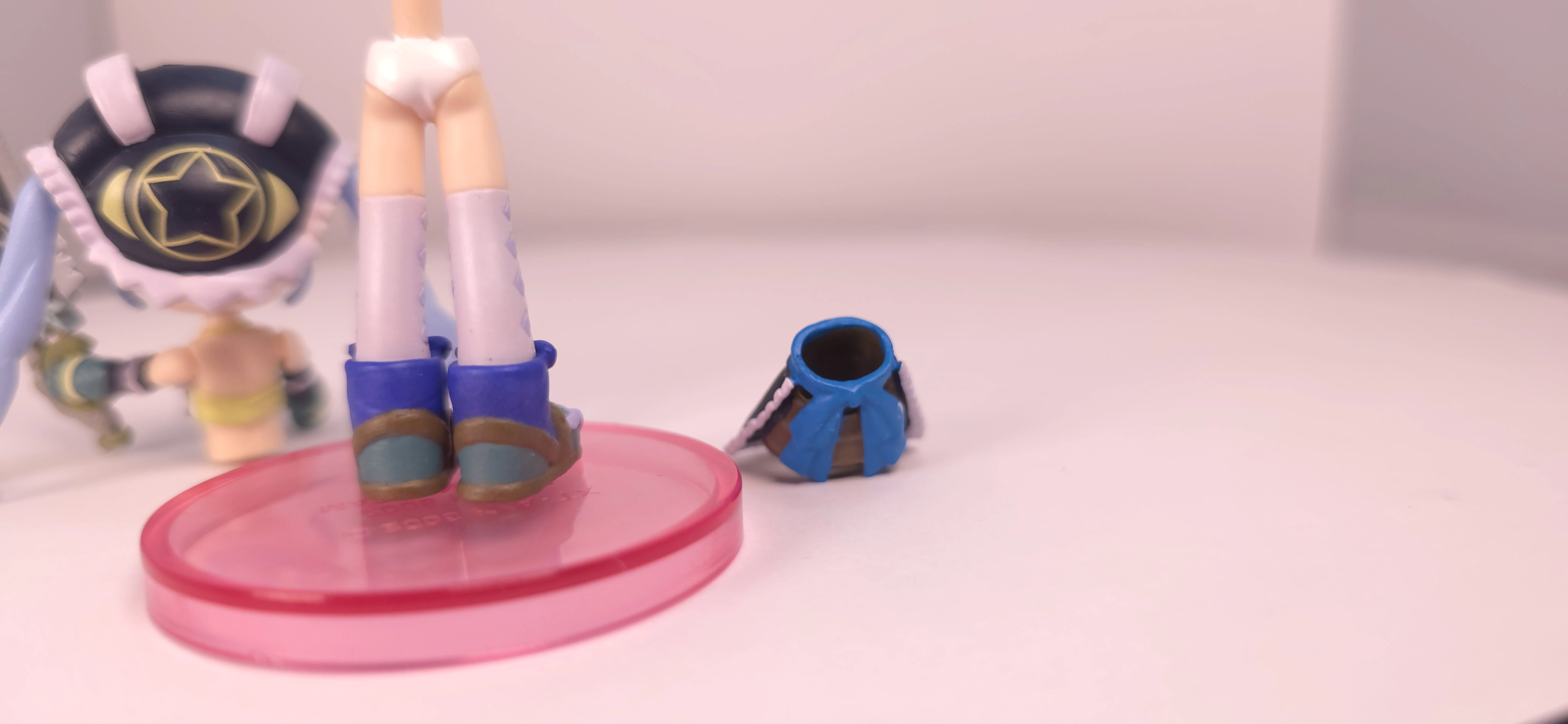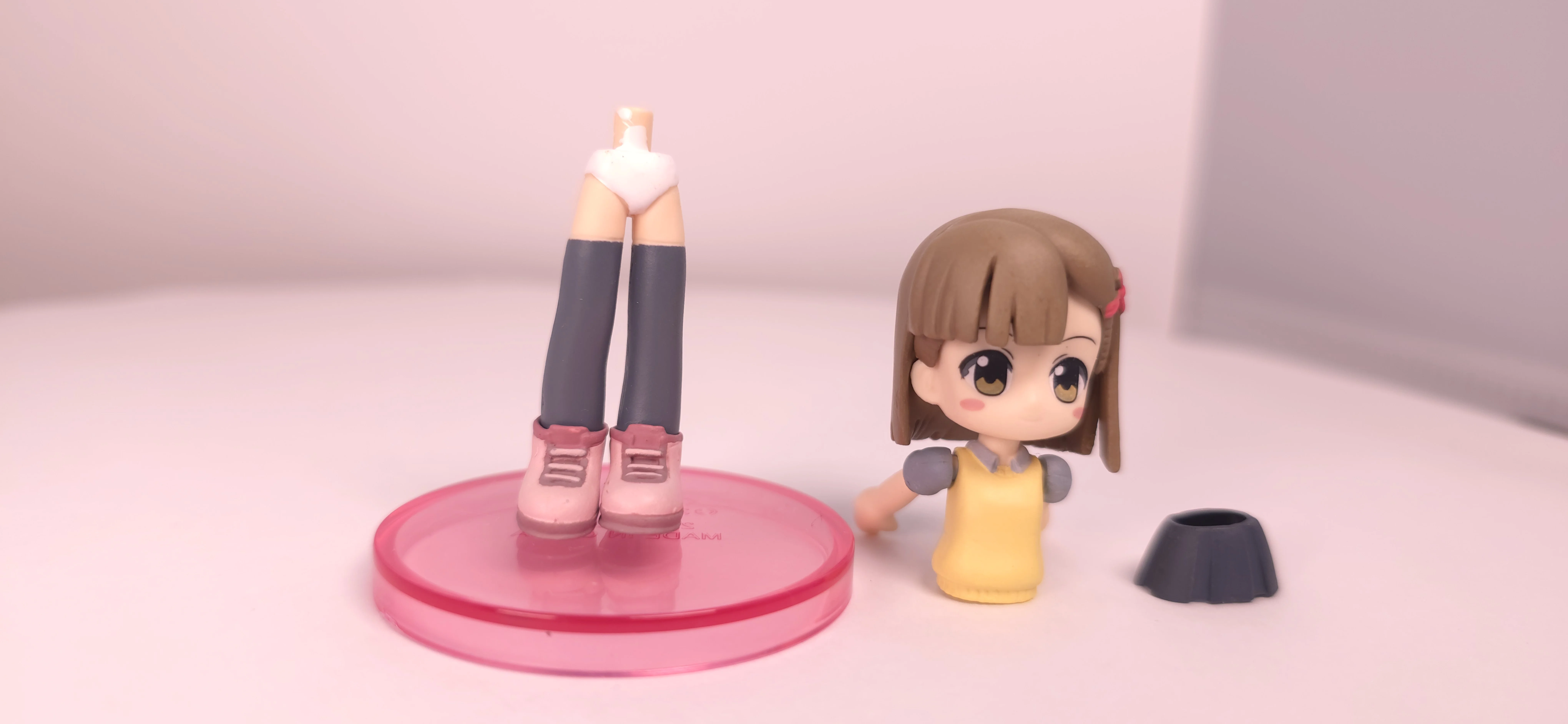 | 特徴 | ※この記事はフィギュア整理中に出てきた損傷の激しい経年劣化フィギュアを思い出として記事にしているものです。 おとぎ銃士赤ずきん Vol.1/Vol.2|2000年代中期の“集めて遊ぶ”ミニフィギュアを振り返る。 「おとぎ銃士赤ずきん」のフィギュア展開の中でも、2006~2007年にコナミ(KONAMI)から発売された**フィギュアコレクションシリーズ(Vol.1・Vol.2)と、デフォルメタイプのフィギュメイト(Vol.1・Vol.2)**は、当時のトレーディングフィギュア文化を象徴するラインナップだ。 まずフィギュメイトシリーズは、全高約70mmのPVC製ミニフィギュアで、1BOXに複数種が封入されるブラインド仕様。Vol.1は2006年11月頃、Vol.2は2007年2月頃に発売され、各弾とも全5種構成となっている。 ラインナップは赤ずきん・白雪姫・いばら姫といったメインキャラに加え、りんごやヘンゼル、グレーテル、サンドリヨンなどサブキャラも網羅されており、作品世界をコンパクトに再現できるのが魅力だ。 特徴的なのは“組み換え遊び”。フィギュメイトはパーツ交換が可能で、衣装やポーズを自由にカスタムできる仕様となっており、ユーザー独自の組み合わせを楽しめる点が大きな強み。 単なる飾りではなく、「触って遊ぶ」ことを前提に設計されているのが当時らしいポイントだ。 一方のフィギュアコレクションシリーズ(Vol.1・Vol.2)は、同じくトレーディング形式ながら、よりリアル寄りの造形が特徴。フィギュメイトよりサイズはやや大きく、キャラクターのプロポーションや衣装ディテールをしっかり再現している。現在の精密フィギュアと比べると簡素ではあるが、当時としては十分な完成度を誇り、アニメの雰囲気を素直に立体化したシリーズといえる。 中古市場では、これら4シリーズ(Vol.1・Vol.2×2種)はまとめて取引されることも多く、全種コンプリートで数千円~1万円前後と、状態次第で価格が変動する。 ただし発売から15年以上経過しているため、PVCのベタつきや塗装劣化、接続部の緩みなどは避けられず、コンディションには個体差が大きい点には注意が必要だ。 総じて、「おとぎ銃士赤ずきん フィギュアコレクション/フィギュメイト」シリーズは、造形美よりも“コレクション性と遊び”に重点を置いた2000年代らしいフィギュア群。現在の高精細フィギュアとは方向性が異なるものの、当時のホビー文化や作品愛を感じられるアイテムとして、今なお一定の価値を持つシリーズである。 |